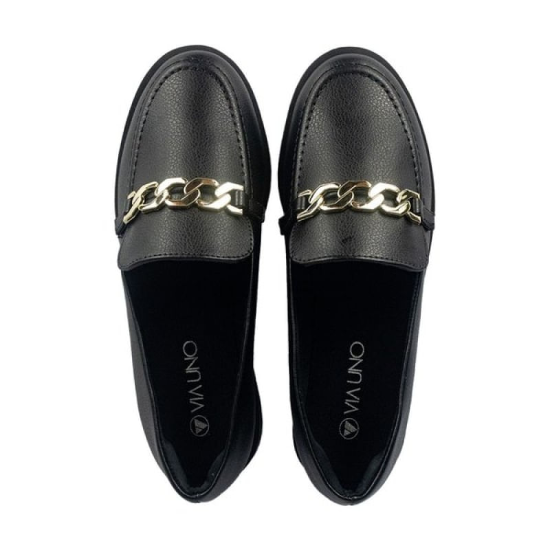 Mocassim Via Uno Corrente Preto - 37 - Mocassim Via Uno com detalhe de corrente. Um modelo confortável e elegante para combinar com diferentes estilos do dia a dia. Características Gerais do Produto: • Marca: Via Uno • É Esportivo: Não • Esportes Relacionados: Não Informa • Estilo: Casual • Gênero: Feminino • Indicado Para: Dia a Dia • Tipo: Mocassim • Tipo de Ajuste: Calce Facil • Material: Sintético • Material Do Solado: PVC • Material Interno: Textil • Palmilha: Espuma Removível Forrada • Entre Sola: N/A Garantia: • Garantia contra defeitos de fabricação do fornecedor por 90 dias