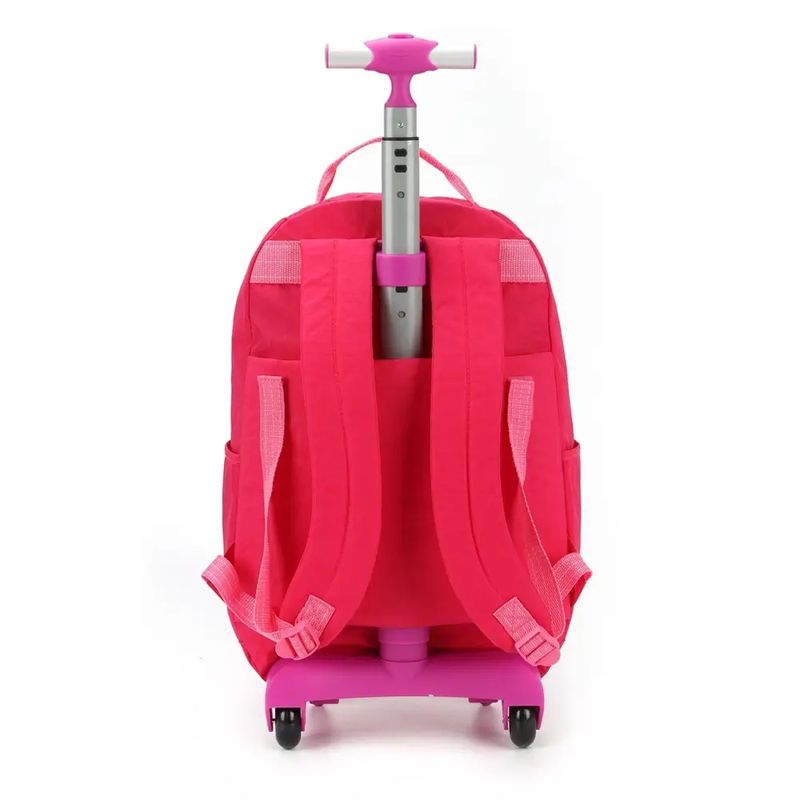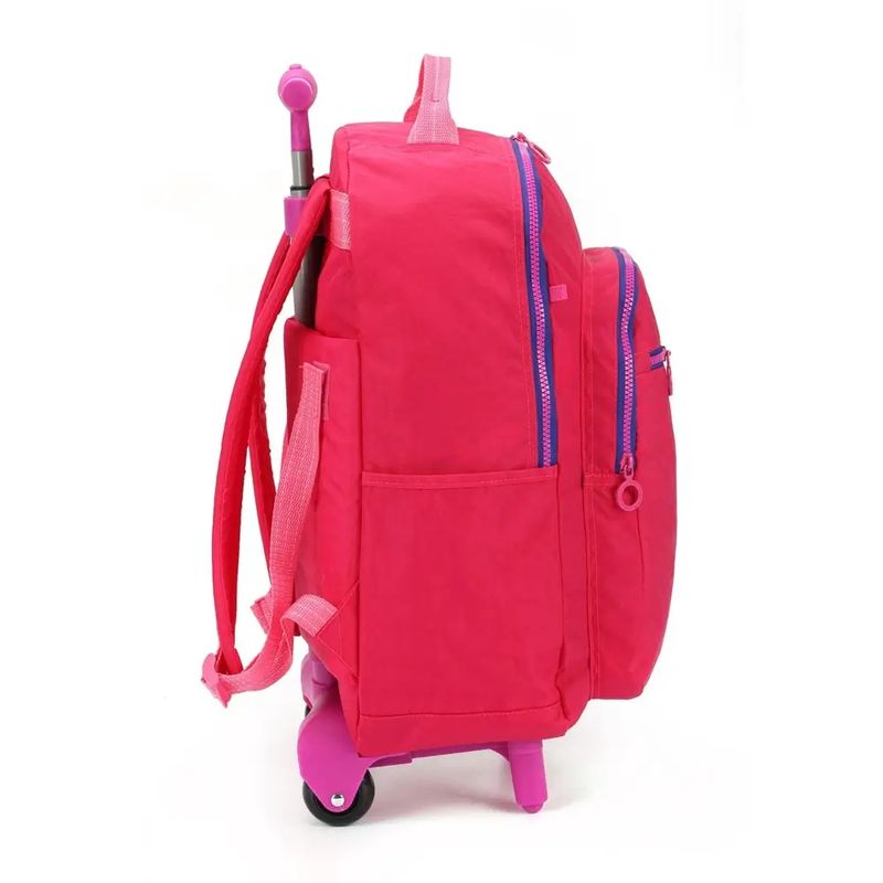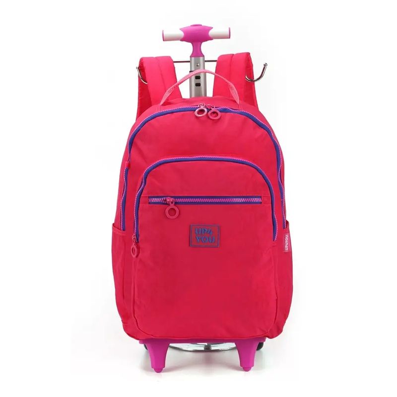 Mochila Com Rodinhas UP4YOU Pink MC47232UP-PK - LuxcelA Luxcel é uma linha com design diferenciado que utiliza ao máximo o espaço interno, alinhando estilo e qualidade em um só produto. Possui compartimentos espaçosos e ergonômicos, pensados para facilitar a organização dos materiais, mantendo-os seguros e prontos para uso. As rodinhas suaves eu facilitam o transporte, mesmo para as crianças menores. Confeccionada em material de alta resistência, esta linha reúne os atributos de beleza, segurança, flexibilidade, praticidade. Características: - 2 Rodinhas- Compartimento para Laptop- Alça de mão.- Chaveiro Pom Pom- Alças acolchoadas e reguláveis caso queira transportar no ombro- 3 Bolsos frontais- 2 Bolsos laterais- Fechamento com zíperes personalizados de metal; - Carrinho em alumínio; - Puxador com botão liberador; - Mochila super leve e resistente. Detalhes:- Medidas: 43 cm x 31 cm (Altura x Largura)- Profundidade: 17cm- Peso: 1,20KG- Cor: Pink- Material: 100% Poliéster- Forro: 100% Poliéster Embalagem com 01 unidade Imagens meramente ilustrativas, as cores podem variar em cada tela ou monitor.