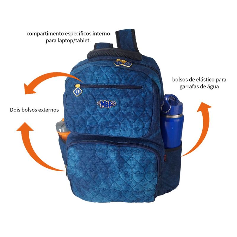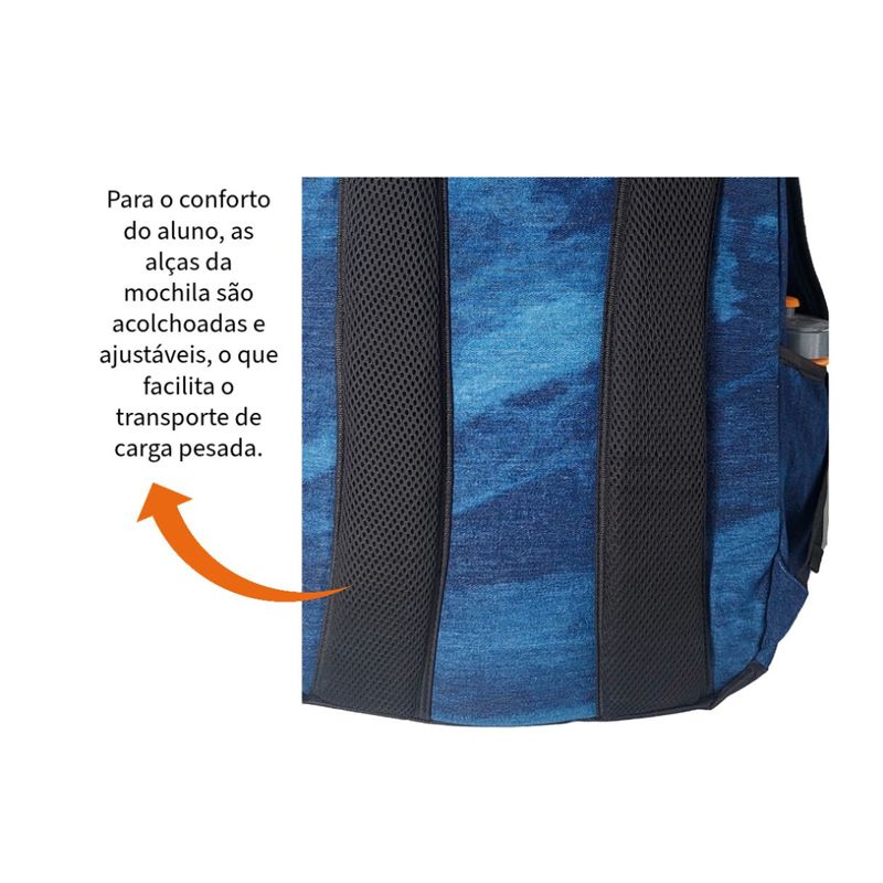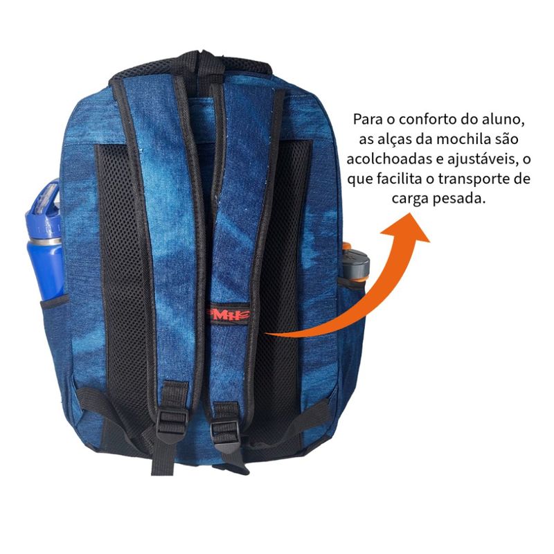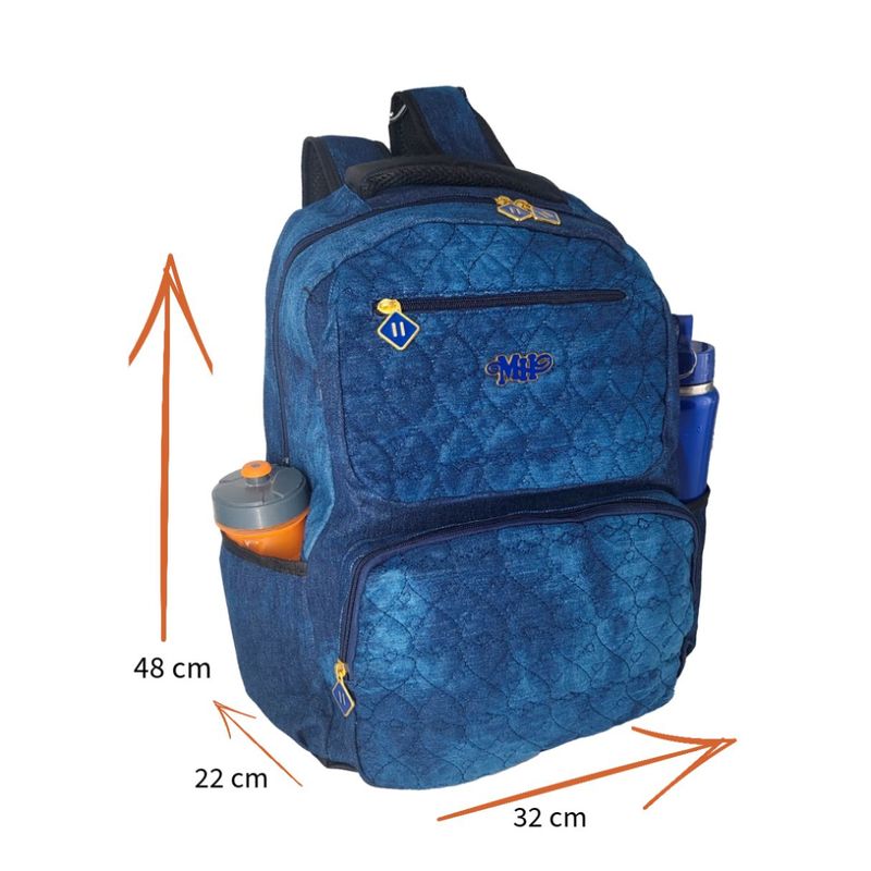 Uma mochila escolar infanto juvenil jeans com vários compartimentos é uma opção popular para estudantes que desejam uma mochila estilosa e funcional para carregar seus materiais escolares. Esta mochila combina o visual do jeans com diversos compartimentos para ajudar os alunos a manterem seus pertences organizados. A mochila é feita de um tecido que imita o jeans de forma mais resistente. Esse material confere um estilo casual e descolado à mochila. - Costuras contrastantes, - Metalassê e puxadores exclusivos - vários compartimentos e bolsos - Isso inclui bolsos extras externos com zíper, - Bolsos de elastico para garrafas de água - Compartimento específicos interno para laptop/tablet. - Tamanho médio a grande - Medidas aproximadas em cm: AxLxP 48x32x22 - Alças Acolchoadas - Toda forrada por dentro para garantir ainda mais a resistência. Qualidade e boa capacidade de resistir ao uso diário, para que o aluno desfrute de uma mochila funcional e com estilo durante todo o ano letivo.