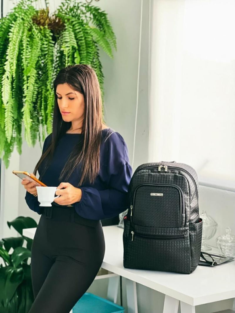 A Mochila Martina é o acessório ideal para quem busca conforto, estilo e praticidade na rotina de trabalho ou estudos. Possui amplo espaço interno para notebook, livros, agenda, pastinhas de documentos e até mesmo um casaco leve. Nos bolsos externos podem ser transportados itens menores como mouse, celular, carteira e nas laterais garrafa de água. Características:Compartimento principal com proteção acolchoada para notebook 15.62 bolsos frontais de fácil acesso com fechamento em zíper2 bolsos externos nas laterais para garrafa de águaAlça de mãoAlças de costas ajustáveisCosturas e fundo reforçados Sobre o material:Produzida em Sintético Laminado PVC de Alta Qualidade e Durabilidade.Diferente do sintético PU, o Sintético PVC não hidrolisa (não descasca), sua base é a mesma utilizada em assentos automotivos.Possui gravação em Tressê, textura elegante e moderna.Material impermeável.Forro: Em poliéster vermelho Especificações:Cores disponíveis: Preta, Marrom e CamelDimensões (CxAxL): 30 cm x 44 cm x 19 cmPeso: 880 gramasGarantia: Um ano contra defeitos de fabricação. Características:Coleção: Coleção TressêMaterial: Sintético Laminado PVC de Alta Qualidade.