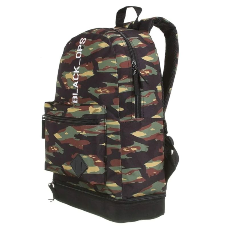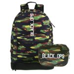 "Mochila Gamer Black Ops + Estojo Oficial Dermiwil Mochila com 3 bolsos, sendo 1 principal, 1 frontal e 1 bolso térmico na parte de baixo da mochila, ideal para guardar alimentos. Todos fechos em zíper. Estojo com fecho em zíper, bolso interno e compartimento para encaixar lápis e canetas. Dimensões da mochila: Altura: 46cm Largura: 31cm Profundidade: 15,5cm Dimensões do estojo: Altura: 6,5cm Largura: 21,5cm Profundidade: 16cm Especificações do produto: Material: Poliéster Cor: Camuflado Marca: Dermiwil Referência: 11634/11633 Itens inclusos: 1 mochila + 1 estojo. Caro consumidor, a Loja EUQUEROUM trabalha com PRODUTOS NOVOS, ORIGINAIS E OFICIAIS! Diga não a pirataria! As imagens contidas neste anúncio são FOTOS REAIS do produto. Nosso lema é: ""Prefiro explicar o meu preço, ao me desculpar pela qualidade""."