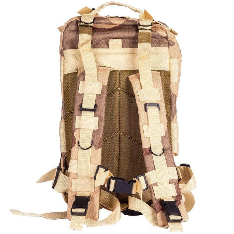 Mochila Multiuso Escolar Tática Cargueira 30 Litros Camping Pesca CáquiTamanho da mochila:Altura: 42cmFrente (largura): 29cmLateral (profundidade): 24cmMochila Tática Multiuso Camuflada estilo trekking ideal para carregar o material escolar e notebooks até 13 polegadas.Confeccionado em tecido 600D resinado em PVC resistente à água, possui alças e painel traseiro acolchoados e com tela respirável para maior conforto.Compacta e funcional, seu formato garante mobilidade ao usuário sem perda de capacidade no armazenamento de equipamentos.Possui 5 compartimentos, sendo um deles para acomodar refil de hidratação de até 3L (Não incluído).Com vários organizadores internos, que auxiliam em operações táticas e no dia a dia e sistema MOLLE (Sistema Modular de Transporte Leve, tecnologia desenvolvida pelas Forças Armadas dos EUA), que permitem ao usuário prender pequenos objetos no exterior da mochila e alcançá-los rapidamente sempre que necessitar.• Zíper bidirecional facilita a abertura por qualquer lado• Alças de ombro ajustáveis e removíveis• Cintos de fixação na cintura e no tórax para maior segurança• Correias de compressão laterais• Costuras reforçadas• Peso suportado: 5kg a 7kg distribuídos nos compartimentos da mochilaPara utilizar melhor sua mochila, é recomendado distribuir o peso pelos compartimentos e utilizar os cintos de fixação. Assim o peso não ficará concentrado em uma única área, evitando sobrecarregar tanto a mochila quanto as costas do usuário.Marca: LorbenMaterial: Tecido 600D resinado em PVCEstampa camufladaCor Predominante: CáquiTamanho da mochila: 42x29x24cmPeso da mochila: 840gTamanho da embalagem: 50x40x7cmPeso da embalagem: 900gCódigo do produto: 929-IImagens ilustrativas. As tonalidades podem variar.