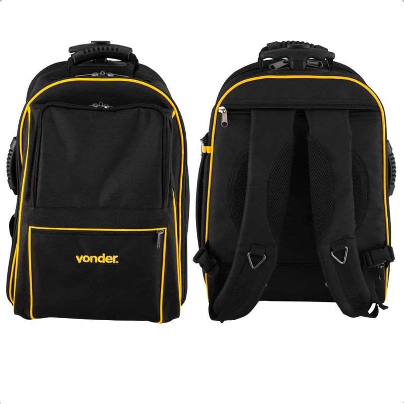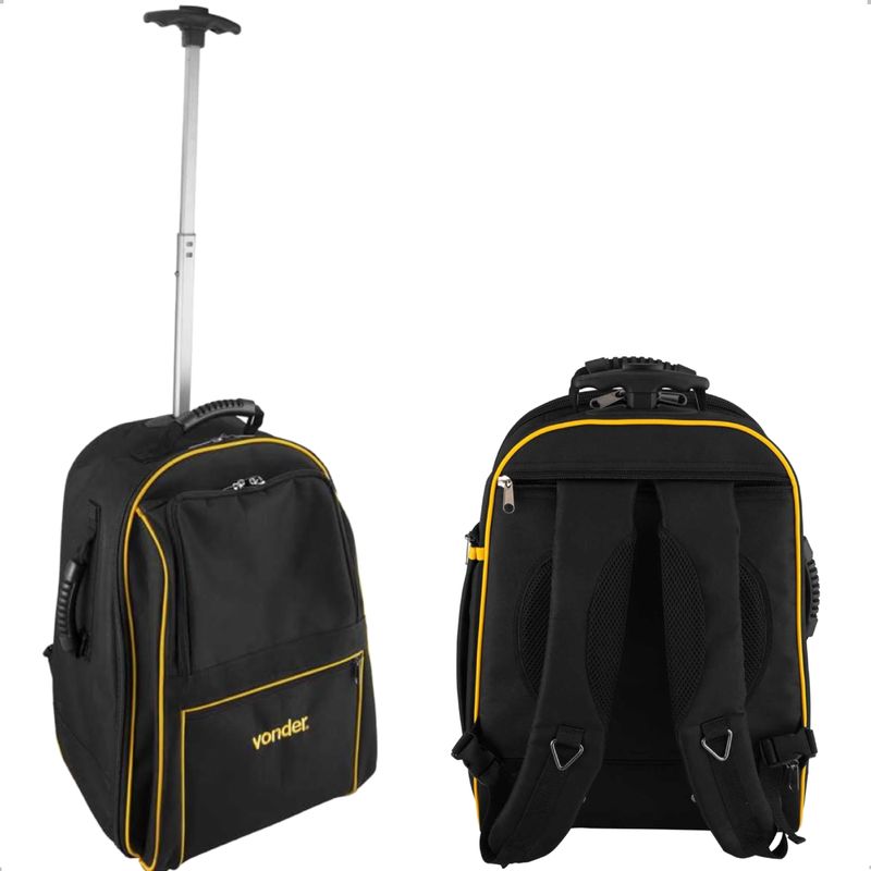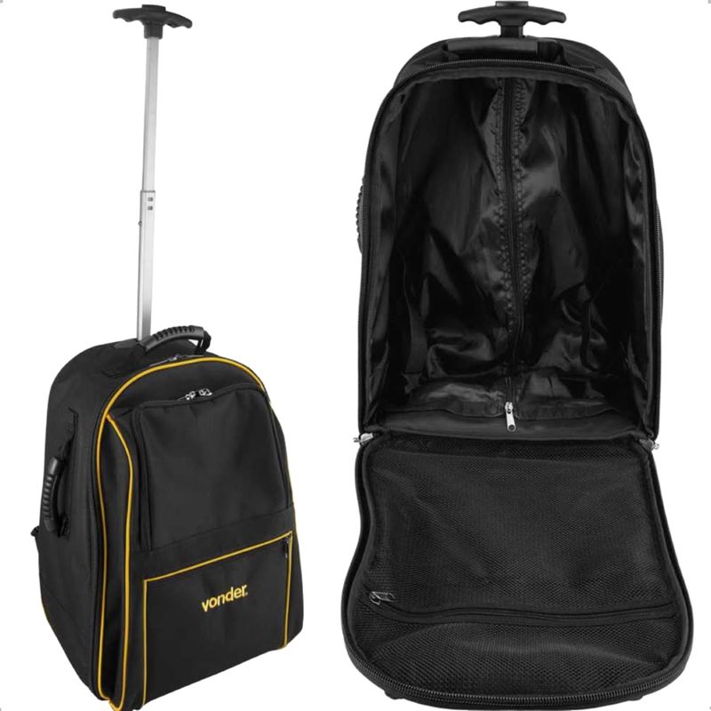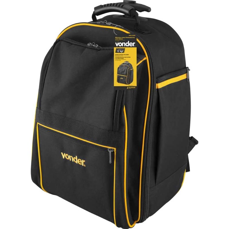 Mochila Com Rodas E Alças Mov0500 Com Puxador Extensível - A escolha perfeita para quem busca praticidade e resistência em uma mochila versátil. Ideal para viagens, transporte de amostras, catálogos ou até mesmo ferramentas, esta mochila é confeccionada em lona reforçada, garantindo durabilidade e resistência. Com alças de costas acolchoadas e reguláveis, alça auxiliar em nylon e zíper reforçado, ela oferece conforto e segurança no transporte. Além disso, possui 2 rodas e um puxador extensível em alumínio, facilitando a locomoção em qualquer ambiente. Com 9 divisões internas e 6 externas, a organização dos seus pertences nunca foi tão fácil. Ah, e a entrega do Full é pra ontem!ESPECIFICAÇÕES TÉCNICAS:- Tipo de mochila: Escolar- Gênero: Meninos- Com rodas: Sim- Marca: Vonder- Cor: Preto com amarelo- Código universal de produto: 7893946525255- Modelo: 3540500050- Altura da embalagem: 27.3 cm- Comprimento da embalagem: 36.9 cm- Peso da embalagem: 2480 g- Largura da embalagem: 52.8 cm- Material da mochila: Lona reforçada- Quantidade de divisões/bolsos internos: 9- Quantidade de divisões/bolsos externos: 6- Material do puxador extensível: Alumínio- Dimensões L (larg) x A (alt) x P (prof) mm: 380 mm x 550 mm x 300 mm- Altura total com puxador estendido: 1020 mm- Quantidade de rodas: 2- Capacidade de carga (kgf): 12 kgf- Massa aproximada(Kg): 2,35 kgBENEFÍCIOS DO PRODUTO:A mochila com rodas Mov0500 é perfeita para quem busca praticidade e organização. Sua lona reforçada garante durabilidade, enquanto as rodas e o puxador extensível facilitam o transporte, tornando-a ideal para viagens e uso diário. Com múltiplas divisões, você pode organizar seus pertences de forma eficiente, garantindo que tudo esteja sempre ao seu alcance.INSTRUÇÕES DE USO:1. Respeite a capacidade de carga de 12 kgf para garantir a durabilidade do produto.2. Evite o contato com objetos pontiagudos para preservar a integridade da lona.3. Para limpeza, utilize um pano úmido e sabão neutro.4. Armazene em local seco e arejado quando não estiver em uso.ITENS INCLUSOS:- 1 Mochila com rodasGARANTIA:Este produto possui garantia legal de 90 dias. Para acionar a garantia, entre em contato com o vendedor e siga as instruções fornecidas.Adquira já a sua mochila e facilite suas viagens!