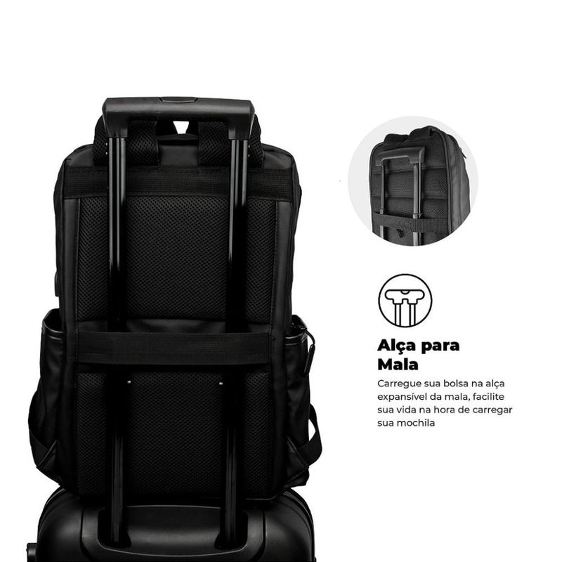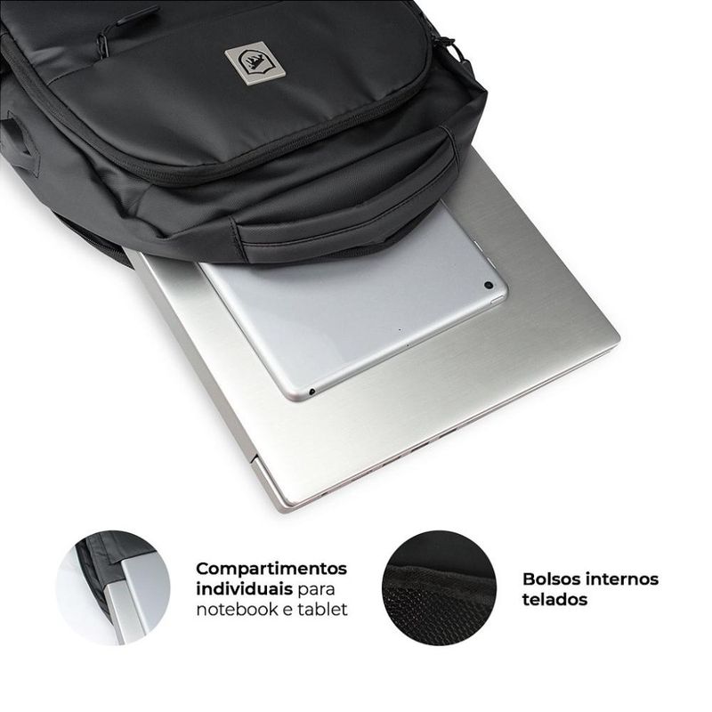 DESCRIÇÃOLeve seus dispositivos com segurança e estilo, mantenha-se carregado em movimento e com seus itens essenciais sempre ao seu alcance!A Mochila Guardian da Gshield é a combinação perfeita de estilo, funcionalidade e praticidade! Companheira essencial para os seus pertences do dia a dia ou para viagens curtas, seja no trabalho ou faculdade, foi projetada para se adequar ao seu estilo de vida moderno e agitado.Segurança e ConveniênciaA Guardian conta com um bolso de zíper oculto em sua parte traseira, nele pode ser guardado o seu celular, documentos, carteira ou qualquer outro objeto pequeno importante, este bolso foi projetado especialmente para proteger tudo aquilo que não podemos perder.Viaje com conforto graças à alça traseira, se você tiver um voo ou uma viagem de trem, poderá encaixar a mochila diretamente na alça expansível da mala de rodinha, tornando o transporte mais cômodo e sem complicações.Saída para carregamento e abertura para fone de ouvidoMantenha-se conectado onde quer que vá! Através da entrada integrada de carregamento USB, você poderá conectar o seu smartphone à um carregador portátil no interior da mochila.Além disso, a abertura para fone de ouvido na parte da frente permite que você aproveite sua música favorita enquanto se desloca.Organização para seus pertencesSeus dispositivos merecem o melhor cuidado, por isso, a mochila possui compartimentos individuais acolchoados para notebook de até 14 polegadas e tablet, garantindo que eles estejam protegidos contra impactos durante suas jornadas.Além disso, mantenha seus itens essenciais organizados nos bolsos internos telados que tornam mais fácil encontrar seus cabos, canetas e cartões.Armazene seus pertences de maneira prática nos bolsos laterais com feixe por pressão, adequados para garrafas de água, guarda-chuvas e muito mais.Com a parte das costas acolchoada, a Mochila Guardian ajuda a reduzir a pressão nas costas e torna o transporte mais agradável, mesmo durante longos períodos. Se tiver dúvidas utilize o campo de perguntas no final da página ou leia as avaliações de outros consumidores.ESPECIFICAÇÕES Peso: 1,3 kg Marca: Gshield Tamanho: 44x35x13 centímetrosCapacidade: 20 Litros Cor: Preta Material: Couro sintético Forro: Poliéster Resistente à agua COMPATIBILIDADE Cabe notebook de até 14'' GARANTIA 3 meses contra defeitos de fabricação + Garantia Vitalícia Co-Participativa
