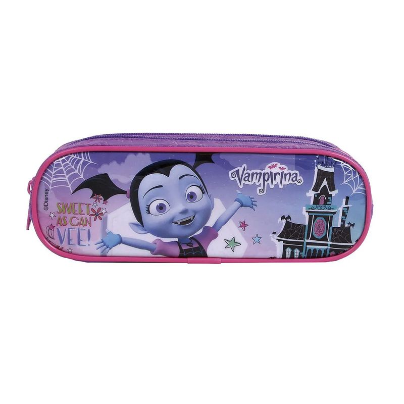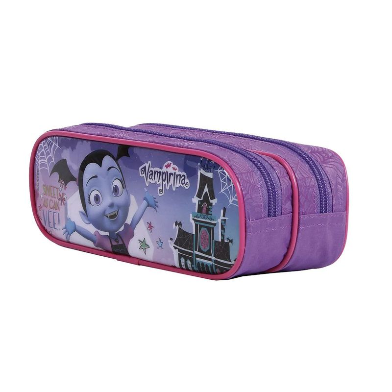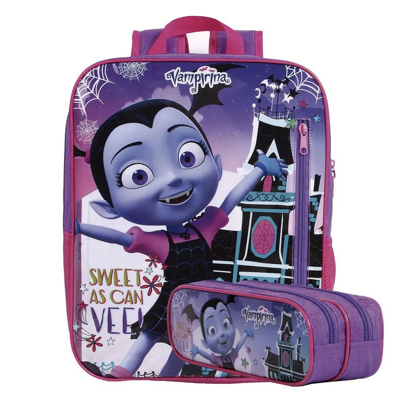 "Mochila Vampirina Oficial Disney Grande + Estojo Produto versátil que pode ser usado tanto para ir à escola quanto para passeios e viagens. Seu modelo retangular foi desenvolvido para facilitar o transporte de todo o material escolar, incluindo pastas, e também para os momentos de lazer e viagem onde as roupas ficam melhor acomodadas .Possui um bolso lateral em mesh, ideal para colocar a garrada de água, e um bolso frontal com zíper para acomodar objetos menores ou a agenda escolar. Alças de costas ergonômicas estampadas que torna o transporte da mochila mais confortável e segura. O Estojo Escolar Vampirina tem 2 divisões e foi desenvolvido em material super resistente e design moderno. Pode ser usado para carregar os acessórios essenciais. É leve e bem estruturado. A Dermiwil trabalha todo dia para transformar pequenos sonhadores em grandes realizadores, por isso tem a linha escolar completa para o seu filho ter mais vontade de ir à escola e se apaixonar pelo conhecimento com os mais diversos personagens, a garotada vai adorar! Dimensões da mochila: Altura: 38cm Largura: 29cm Comprimento: 14cm Peso: 0,285kg Dimensões do estojo: Altura: 8cm Largura: 22cm Comprimento: 7cm Peso Aprox.: 0,080kg Especificações do produto: Material: Poliéster Cor: Roxo/Rosa Marca: Disney Ref.: 52202/52200 Itens inclusos: 1 mochila + 1 estojo. Caro consumidor, a Loja EUQUEROUM trabalha com PRODUTOS NOVOS, ORIGINAIS E OFICIAIS! Diga não a pirataria! As imagens contidas neste anúncio são FOTOS REAIS do produto. Nosso lema é: ""Prefiro explicar o meu preço, ao me desculpar pela qualidade""."