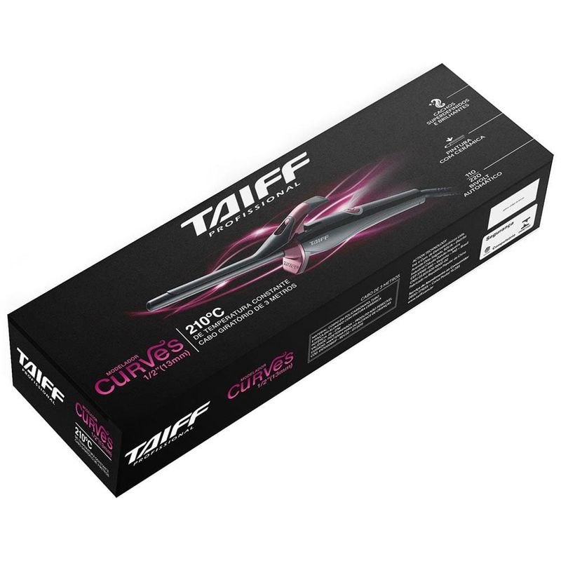 O Modelador Taiff Curves 1/2 possui design moderno e ergonômico que facilita a modelagem. E, com tubo e pinça revestidos de cerâmica, protege os fios e garante mais brilho. O aparelho é perfeito para cachos pequenos e atinge uma temperatura de 210º C, proporcionando um efeito mais natural. O Acessório da Taiff que você precisa para deixar seus cabelos do jeito que desejar em qualquer ocasião.
