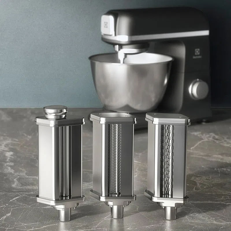 - Destaques: • Sempre buscando soluções para tornar o seu dia a dia mais prático, a Electrolux traz para você o novo Modelador de Massas compatível com a Batedeira Planetária Expert KMP70. Ideal para o preparo de diferentes massas frescas, com sabor inigualével e feitas na sua casa. • MASSA DE CHEF NA SUA CASA: Prepare diferentes receitas utilizando os 3 modeladores para massas como lasanha, corte tipo espaguete e corte tipo fettuccine. • FUNCIONAL E COMPACTO: Com design compacto, você acopla facilmente e depois retira todo o modelador de massas para limpar e guardar. • DURABILIDADE E QUALIDADE: Itens feitos de aço inoxidável de alta qualidade, que garantem segurança durante o uso e encaixe perfeito na batedeira. - Itens inclusos: • 01 Modelador de Massas • 01 Cortador Estilo Fettuccine • 01 Cortador Estilo Espaguete - Compatibilidade: • Batedeira Planetária Electrolux Expert KMP70
