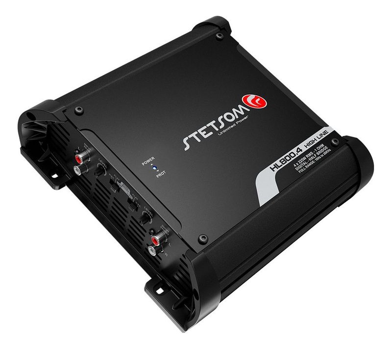 Se você quer ter um projeto de som maneiro e que faça um som de primeira, você deve adquirir este Módulo Amplificador da Stetsom, modelo High Line HL800.4, pois com ele é só pancada! Este módulo de som, conta com 4 canais, potência RMS de 900W, impedância de 2 Ohms, resposta de frequência de 10Hz a 26KHz, proteção contra curto-circuito e recursos independentes nos canais frontais e traseiros como o Level para ajustar o nível do sinal de entrada e o Crossover, permitindo escolher entre atuação em Low-Pass, High-Pass ou Flat (Full-Range). Especificações Técnicas: • Número de Canais: 4 • Potência RMS em 2 Ohms 12,6V: 4 x 225W RMS (Stereo) • Potência RMS em 4 Ohms 12,6V: 4 x 140W RMS (Stereo) • Potência RMS em 2 Ohms 13,8V: 4 x 260W RMS (Stereo) • Potência RMS em 4 Ohms 13,8V: 4 x 165W RMS (Stereo) • Potência @ 12.6V Bridge 4 Ohms: 2 x 450W RMS • Potência @ 13.8V Bridge 4 Ohms: 2 x 520W RMS • Tensão de Alimentação: 9 ~ 15V • Resposta em Frequência: 10Hz ~ 26KHz • Crossover Low Pass: 90HZ • Crossover High Pass: 90Hz • Relação Sinal Ruído: > 90 dB • Distorção Harmônica:
