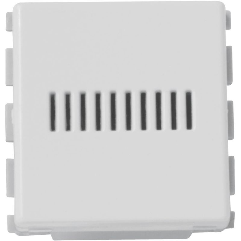Módulo Campainha Cigarra Eletrônica Bivolt Tramontina Branca A Campainha Cigarra Eletrônica Bivolt Tramontina Branca é a peça que não pode faltar no seu projeto. Na cor branca, ela é versátil e pode ser trocada pelo modelo na cor grafite, além de poder ser usada em diferentes placas das linhas Tramontina. Produzida em termoplástico, possui acabamento brilho que não retém poeira, proporcionando um visual limpo e prático. Destinada à reprodução de alertas sonoros, acionados por pessoas presentes em outro ambiente. Possui excelente intensidade sonora, e portanto, é perfeita para a finalidade a que se destina. Seu som é reproduzido durante todo o tempo que o pulsador for mantido pressionado. Utilizar nas linhas Liz, Lux², Giz, Tablet, Lizflex e Plastibox com tampa sistema modular.