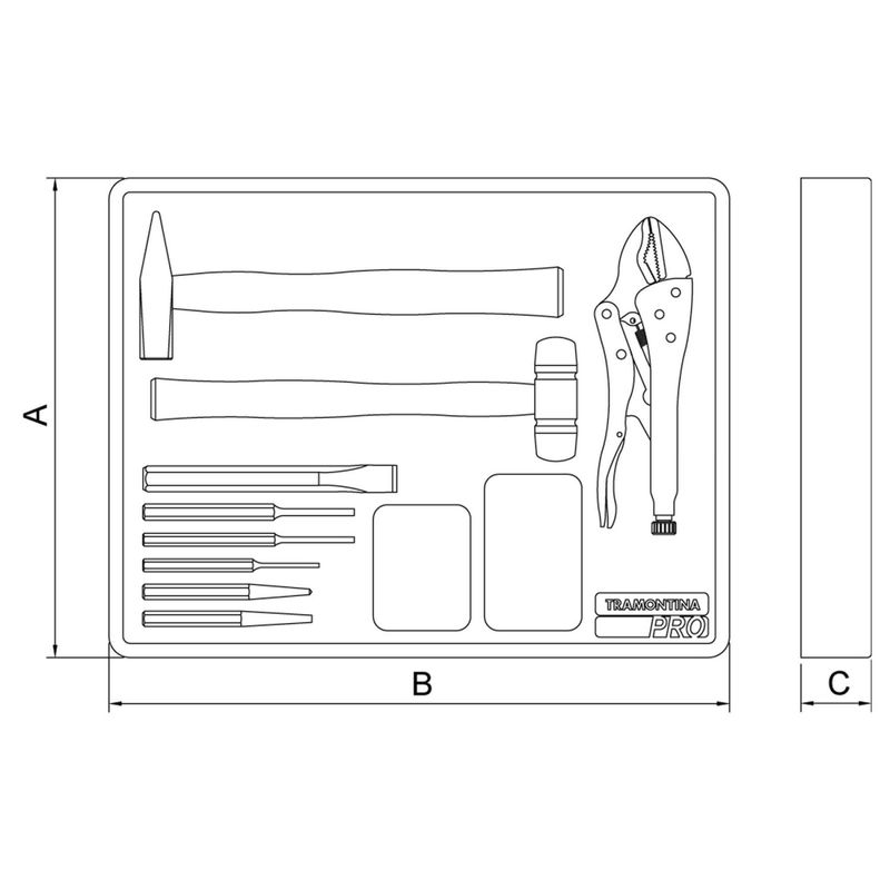Módulo com Ferramentas 9 Peças Tramontina PRO Orgnizador Ferramentas para Gavetas e Armários Tramontina - Módulo com Ferramentas 9 Peças Tramontina PRO Orgnizador Ferramentas para Gavetas e Armários Os módulos Tramontina PRO, são produzidos em plástico termoformado e auxiliam, em uma melhor racionalização dos espaços, organização e produtividade. Foram projetados para encaixe perfeito nas gavetas dos carros organizadores da linha e estão disponÃveis em várias composições e formatos. Porque não basta ter a ferramenta certa, é preciso ter ela sempre à mão. Bandeja em plástico termoformado.Composição variada que oferece versatilidade na utilização industrial e automotiva.As ferramentas são produzidas e testadas conforme normas especÃficas. Cuidados com o produto Use óculos, luvas e outros equipamentos de proteção individual (EPIs) de acordo com a tarefa a ser executada. Mantenha ferramentas de corte longe do alcance de crianças. Mantenha as ferramentas sempre limpas para um melhor agarre, pois usá-las sujas com graxa ou óleo pode causar acidentes. Armazene em local limpo e seco. Garantia Garantia total contra vÃcios ou defeitos de fabricação. - - Características Gerais do Produto: Garantia: • 3 Meses