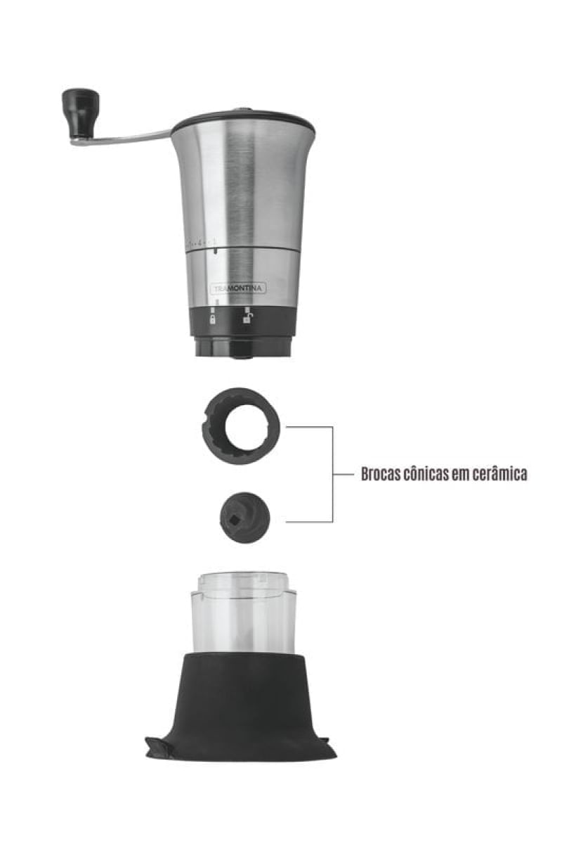 Para os apreciadores de café, moer os grãos é uma experiência ainda mais especial, pois o sabor e o aroma se intensificam, criando sensações e momentos únicos.Para moer os grãos com qualidade e vivenciar experiências únicas com sua bebida favorita, utilize o Moedor de Café em Aço Inox com Copo de Acrílico e Moinho em Cerâmica.A peça é produzida em aço inox, com detalhes em acrílico, e conta com ajuste de moagem.Um item que não pode faltar na sua cozinha!Destaques: - 16 níveis de ajuste de moagem, do fino ao grosso- Mós cônicas em cerâmica, que não aquecem os grãos- Indicado exclusivamente para moer café- Compartimento em acrílico, corpo em aço inox- Base em silicone antiderrapante, que fixa o moedor à superfície durante o uso- Capacidade: 55 g de grãosNão lavar o moedor; para limpeza, use um pano úmido na parte externa.
