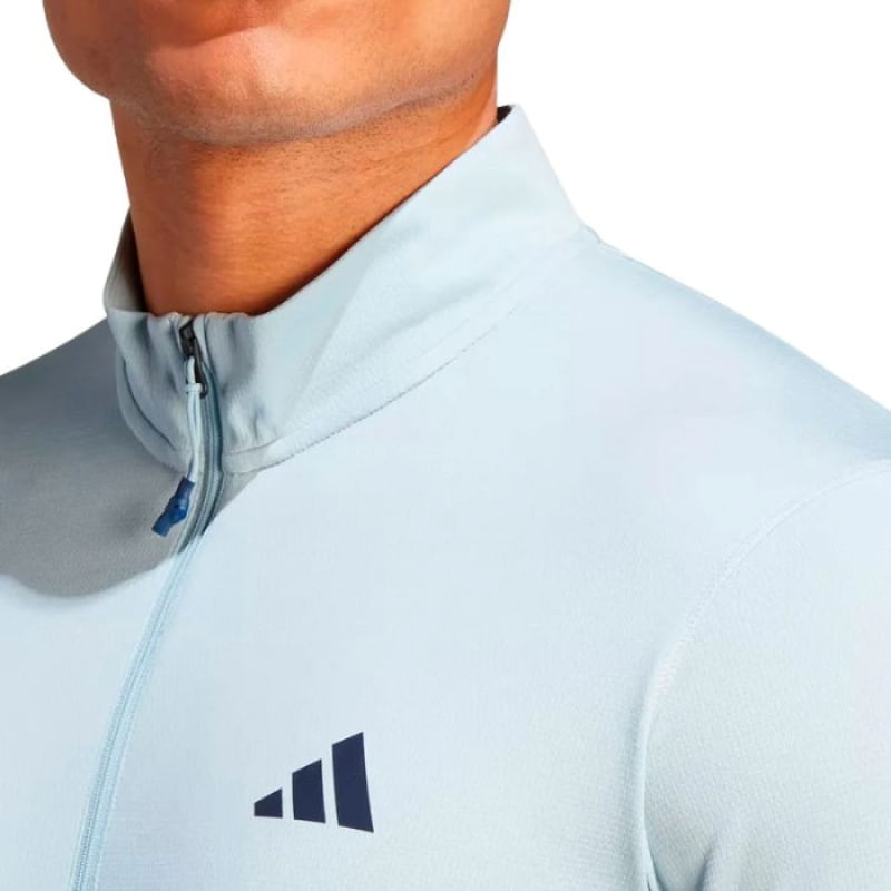 Feita com uma mistura de materiais reciclados e renováveis Quando você tem o equipamento certo, seguir um plano de treino é muito mais fácil. Esta camiseta de manga longa adidas com meio fecho de zíper mantém seu corpo seco e confortável durante os aquecimentos, pós-treino e treinos de mobilidade. Com modelagem que permite total liberdade de movimentos, para que você possa se estender quando levantar os braços ou alcançar mais longe em subidas de corda. Uma mistura de materiais reciclados e renováveis compõe no mínimo 70% deste produto.