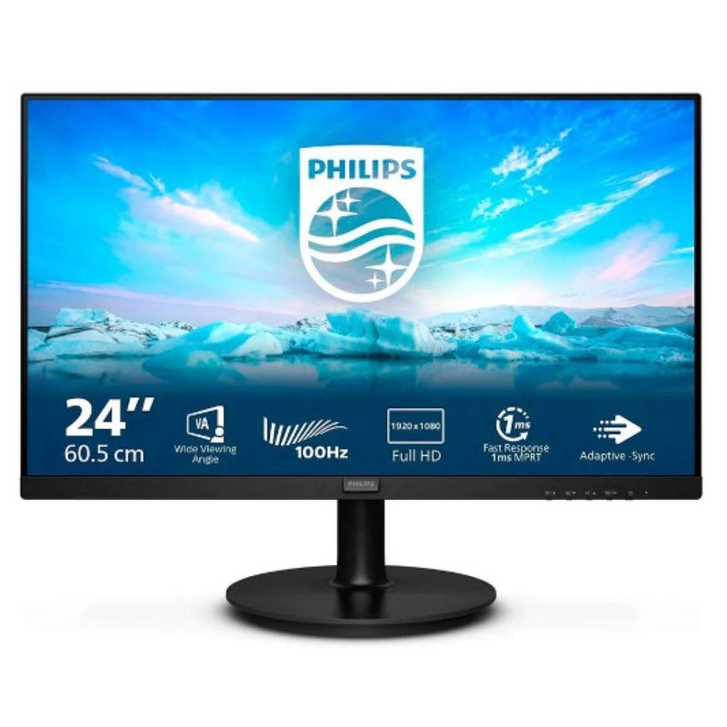 Caracteristicas: - Marca: Philips - Modelo: 241V8LAB Com taxa de atualização de 100Hz, entradas VGA e HDMI, e painel LED, ele proporciona uma experiência de jogo fluida e visual de alta qualidade. Ideal para gamers que buscam imersão e desempenho, este monitor é a escolha perfeita para seu setup. Especificações Técnicas: - Tela: 24 Widescreen VA - Resolução FHD - Tamanho da imagem visivel Diagonal 60,5 cm - Tipo de painel VA - Brilho 250 cd/m² - Constraste Dinâmico Mega Infinty DCR (>150.000.000:1) - Constraste estático 4.000:1 - Ángulo de visão H:178° V:178° - Taxa de atualização 100 Hz - Tempo de resposta 1ms MPRT - Tecnologia de sicronização Adaptive-Sync - Alto-falantes Sim (2W x 2) - Dimensões: 22 x 54 x 41,6 cm Peso: 4,85kg - Garantia 1 ano