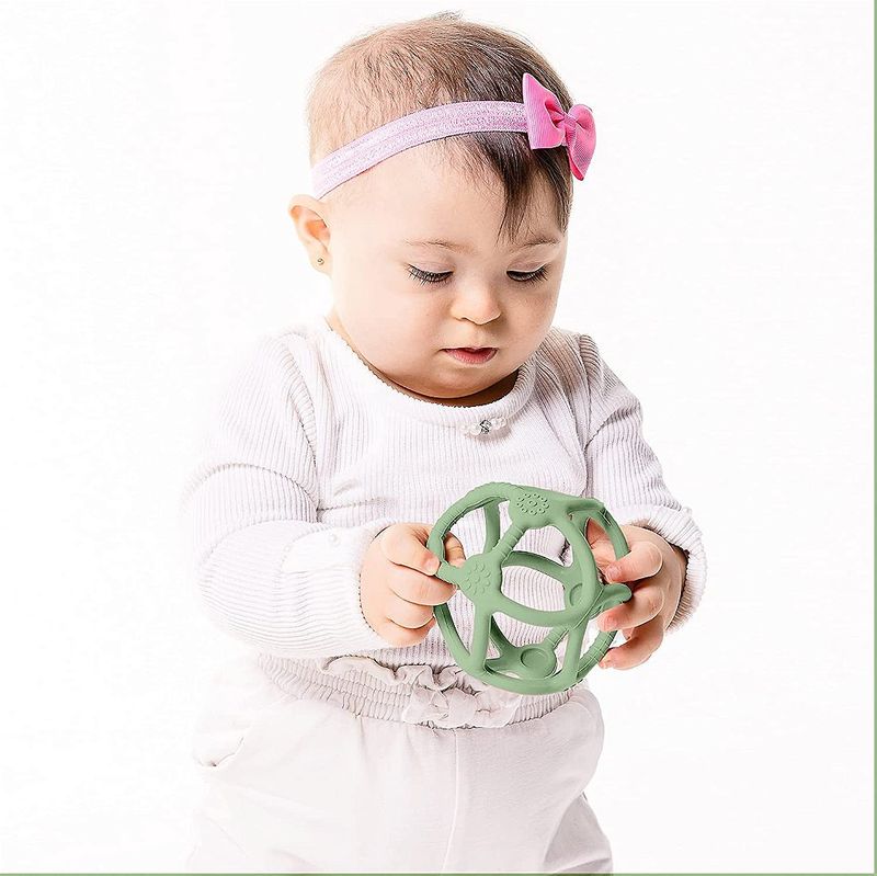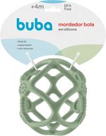 Mordedor Bola em Silicone Flexível Verde - Buba O Mordedor bola de silicone ajuda seu bebê a aliviar o estresse causado com o crescimento do dente, além de interagir e puxar toda a atenção, brincando com essa bolinha diferente. - Alivia as dores/incômodos no período do nascimento dos dentes; - Auxilia no estímulo dos sentidos e a percepção ativa do bebê; - Acalma as dores na hora de morder e coçar as gengivas; - Treina e fortalece a musculatura necessária para a mastigação; - O seu formato também ajuda a estimular o desenvolvimento do bebê. - Livre de BPA e ftalatos. Produto 100% atóxico; - Possui formato perfeito para o bebê segurar; - Confeccionado em 100% silicone, é super macio, flexível e com diferentes texturas; - Medidas aproximadas: 9 (Ø) cm; - Selo do INMETRO: Registro 007883/2021; - Marca: Buba; - Idade: +4 meses.