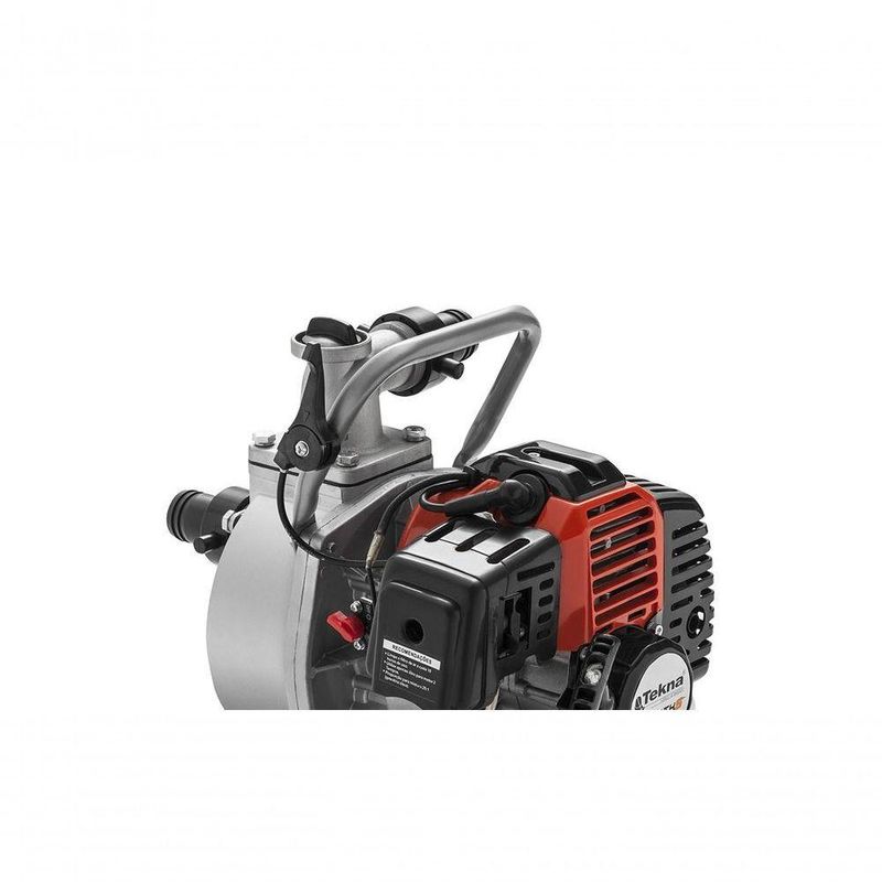 Motobomba Autoescorvante 42,7cc 2t 1.1/2x1.1/2 Gasolin TeknaCód. Fornecedor: MB15TKYMarca: Tekna- Motor 2 Tempos- Cilindrada 42,7 cc- Diâmetro de Sucção e Recalque 1½? x 1½?- Altura Máxima 35 m.c.a.- Vazão Máxima 15 m³/h- Sucção Máxima 8 m.c.a.A Motobomba Autoescorvante a Gasolina Tekna MB15TKY é equipada com motor 2 tempos de 1,6 HP de potência e 42,7 cilindradas. Sua estrutura compacta apresenta baixo peso, com diâmetro de sucção e recalque de 1½? x 1½?.- Bomba Autoescorvante- Estrutura Compacta- Portátil- Com AlçaInformações AdicionaisA Motobomba portátil MB15TKY é adequada para uso ocasional com Água limpa. Equipada com bomba autoescorvante que realiza transferência de grandes volumes de Água, com baixa pressão. Sendo ideal para transferência entre cisternas, enchimento de tanques, captação em pequenos lagos e poços. Oferece uma excelente autonomia, alta potência, vazão e sucção, com peças de baixa manutenção. É portátil e de fácil armazenagem, possui alça para facilitar o transporte e pés que garantem a estabilidade do equipamento. Seu kit de acessórios conta com filtro e abraçadeiras. NA