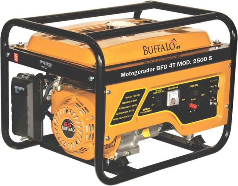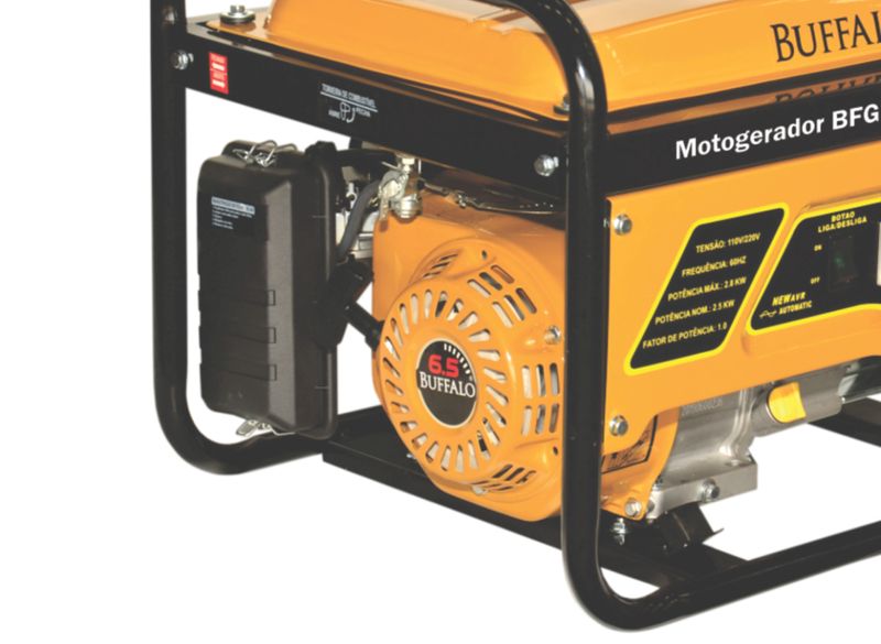 Os Geradores Buffalo Proporcionam Segurança De Energia Onde Você Precisar, Tenha Essa Força. O Gerador Bfg 2500 É Equipado Com Motor 6,5Cv Gasolina, Fornece 2,5 Kw De Potência Nominal, Acompanha O Kit Partida Elétrica E Bateria, Possui Chave Seletora De Tensão (110V Ou 220V), É Ideal Para Ser Usado Em Casa, No Trabalho, Construção Civil, Em Momentos De Lazer Ou No Campo. Código:60638 Tipo:Gasolina 4T - Refrigerado a Ar Potência do Motor (Cv)(KW/Rpm):7,0 (5,2/3600) Diâmetro X Curso (mm):70 X 54 Óleo Lubrificante (L/tipo):0,6 / SAE 20W50 Combustível (L/tipo):12,5 / Gasolina Comum Consumo Médio (L/h):1,5 Pressão Sonora a 7m (dBA):68,0 Sistema de Alimentação (Tipo):Carburador (Bóia) Sistema de Ignição (Tipo):Eletrônica (CDI) Sistema de Partida (Tipo):Elétrica e Manual Sistema de Lubrificação (Tipo):Salpico Filtro de Ar (Tipo):Espuma Alternador (Tipo):Monofásico Tensão de Saída (V):115/230 Frequência (Hz):60,0 Potência Máxima (KW/KVA):2,8 / 2,8 Potência Nominal (KW/KVA):2,5 / 2,5 Disjuntor (A):10,0 Fator de Potência (cos φ):1,0 Carregador de Baterias (Tipo):12V DC / 8A Controle de Tensão (Tipo):AVR com Escovas Observações:Seletor de Tensão Acessórios que acompanham o item: Chave de Vela, bateria, manual de instruções e relação de assistentes técnicos.