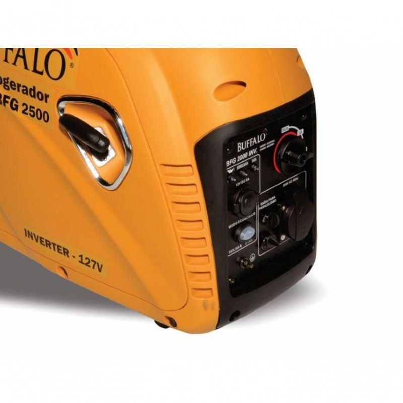 Motogerador Gasolina Buffalo Inverter 4cv Mono 220V P ManualOs Geradores Buffalo Proporcionam Segurança De Energia Onde Você Precisar, Tenha Essa Força. O Gerador Inverter 2500 220V Possui O Design Projetado Para Ser Ergonomico, Facilitando Seu Transporte E Reduzindo A Emissão De Ruidos. Fornece Energia Limpa E Estabilizada Na Potência De 2,2 Kw, Ideal Para Equipamentos Eletrônicos, Barcos, Trailer E Motorhomes, Entre Outros. Código:60431 Tipo:Gasolina 4T - Refrigerado a Ar Potência do Motor (Cv)(KW/Rpm):4,0 (3,0/4000) Cilindrada (cm³):98 Óleo Lubrificante (L/tipo):0,35 / SAE 20W50 Combustível (L/tipo):3,5 / Gasolina Comum Consumo Médio (L/h):0,7 Pressão Sonora a 7m (dBA):62,5 Sistema de Alimentação (Tipo):Carburador (Bóia) Sistema de Ignição (Tipo):Eletrônica (CDI) Sistema de Partida (Tipo):Manual Sistema de Lubrificação (Tipo):Salpico Filtro de Ar (Tipo):Espuma Alternador (Tipo):Monofásico Tensão de Saída (V):230,0 Frequência (Hz):60,0 Potência Máxima (KW/KVA):2,5 / 2,5 Potência Nominal (KW/KVA):2,2 / 2,2 Corrente Nominal (A):10 Fator de Potência (cos ?):1,0 Carregador de Baterias (Tipo):12V DC / 8AAcessórios que acompanham o item: Chave de Vela, manual de instruções e relação de assistentes técnicos. NA