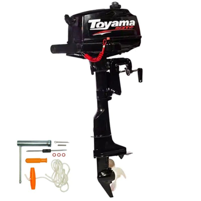 Motor de Popa Gasolina 3,6 HP TM3.6TS TOYAMA Motor de Popa de pistão 2 Tempos, ignição por centelha, TM3.6TS, com 3.6 HP de potência máxima. Possui sistema de ignição por CDI e afogador, que permite executar partidas mais rápidas e fáceis. O TM3.6TS é prático na hora de montar, com um design leve e compacto facilita o transporte. Oferece ótimo rendimento, desempenho e baixo consumo de combustível. Além disso, conta com um sistema de regulagem que permite inclinar facilmente o motor em várias posições diferentes. O TM3.6TS é ideal para quem procura economia, desempenho, segurança, durabilidade e funcionamento silencioso para navegar com tranquilidade em águas rasas e realizar atividades náuticas. Dados Técnicos Produto: Motor Marítimo de PistãoTipo: 2 Tempos, GasolinaRefrigeração: Refrigerado à ÁguaPotência: 3.6 HpCilindrada: 74.6 ccSistema de Partida: Partida ManualRotação máxima: 4200-5300 rpmRotação mínima: 1450-1550 rpmFixação: Externa na Popa do CascoCilindros: MonocilíndricoSistema de partida: Manual RetratilHélice: 3 - 7 1/2" x 7"Capacidade do Tanque: 1,5 lMarcha: Frente-NeutroComprimento do Eixo: 381 mmCaracterística Adicional: Com Rabeta CurtaPeso: 16.6kgDimensões: 1010 x 460 x 340 mm Garantia: 3 mesesReferência: 750-000Marca: TOYAMA * Imagens meramente ilustrativas