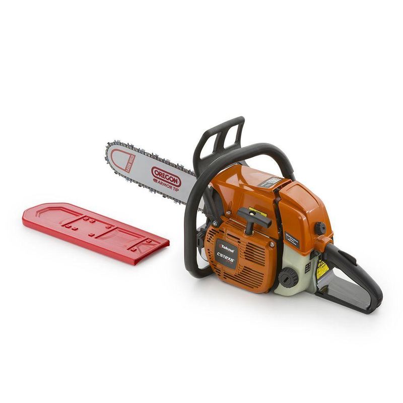 Motosserra Gasolina Cs72xs-pro 72cc Corrente Oregon Sabre 13'' At TeknaCódigo: CS72XSP13ORDMarca: TeknaPonta Dura- Cilindrada 72,2 cc- Potência - Sabre Oregon de 13? AT- Passo/calibre 3/8?x 0,063? 75D- Rotação Máxima de 13500 rpmA Motosserra Tekna CS72XS-PRO une potência e tecnologia para um trabalho de alto rendimento. Construída para aguentar o pesado, é potente e robusta, com motor de 4,8 e 72,2 cilindradas.- Conjunto de corte Oregon- Carburador Pré-regulado- Cilindro Revestido com Níquel Cerâmico- Bomba de Óleo Automática- Carcaça em MagnésioInformações AdicionaisResistente e leve, a motosserra Tekna CS72XSP13ORD é excelente para atividades de colheita, desbaste, traçamento, podas e cortes de árvores e madeiras em geral, tanto em áreas rurais quanto urbanas. Seu sistema antivibratório, gera estabilidade à operação, tornando-a mais confortável e segura. Possui válvula de descompressão e carburador pré-configurado para partida fácil e potência constante. Equipada com bomba de óleo automática, cilindro niquelado, carcaça em magnésio e virabrequim de alta qualidade, que garantem uma longa vida útil e baixa manutenção. Todas essas características fazem do produto um equipamento de excelente performance para resistir a grandes rotações e ao uso intensivo . Acompanha um kit de ferramentas, capa para o sabre e misturador de combustível. NA