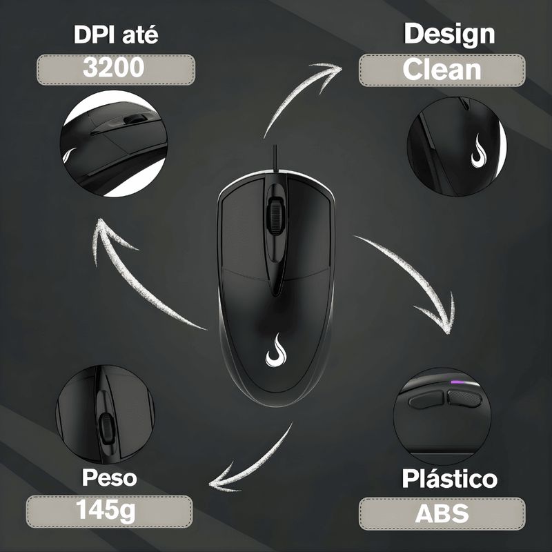 O Mouse Office Rise Mode USB 3200dpi Cor Preto RM-MO-01-FB BK é um periférico de computador desenvolvido para uso em escritório e navegação diária. Oferece precisão e conforto para longas horas de trabalho, com sensibilidade ajustável para atender a diferentes necessidades de uso. A cor preta confere um design profissional e discreto ao setup. Especificações Técnicas Marca: Rise Mode Modelo: RM-MO-01-FB BK Cor: Preto Interface: USB Resolução (DPI): 3200dpi Situações onde se utiliza o produto Navegação em documentos e planilhas no ambiente de trabalho. Uso geral em computadores de escritório e notebooks. Atividades que exigem precisão no clique e conforto ergonômico básico. Configurações de múltiplos monitores devido à alta resolução de DPI. Dúvidas Frequentes O DPI é ajustável? Sim, o mouse possui níveis de DPI ajustáveis, permitindo ao usuário alternar entre diferentes velocidades do cursor. É compatível com notebooks e desktops? Sim, o produto é universalmente compatível com qualquer computador que possua uma porta USB disponível. Precisa de software de instalação? Não, o mouse é Plug and Play (PnP), funcionando imediatamente após ser conectado ao computador. Tem iluminação LED? A descrição do produto não especifica a presença de iluminação LED. O foco é na funcionalidade para escritório. NCM
