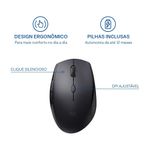 Você já se viu perdendo preciosos minutos enquanto o cursor do seu mouse parece ter vida própria, arrastando-se lentamente pelo monitor? Sabemos que a busca por um mouse sem fio confiável, confortável e eficiente pode ser uma tarefa árdua. Mas não se preocupe mais, pois apresentamos a você a solução definitiva para esses dilemas: o Mouse Sem Fio MS400 2400 DPI 6 Botões e Clique Silencioso Preto da Multi.Com um design ergonômico cuidadosamente idealizado, o Mouse Sem Fio MS400 se encaixa perfeitamente na sua mão, proporcionando horas de uso confortável e sem esforço. Seus cliques silenciosos garantem um ambiente tranquilo, permitindo que você se concentre no que realmente importa. E com a capacidade de ajustar o DPI entre 1600, 2000 e 2400 , você pode personalizar a sensibilidade do mouse de acordo com suas preferências, seja para tarefas precisas ou movimentos mais amplos.Imagina a praticidade de um mouse sem fio com alcance de até 10 metros, possibilitando maior flexibilidade e eliminação dos emaranhados de fios na sua área de trabalho. Graças à conexão 2.4GHz, a estabilidade é incomparável, proporcionando uma experiência suave e sem interrupções. E, para sua conveniência, incluímos uma pilha AA que garante uma incrível duração de até 12 meses, reduzindo a necessidade de trocas frequentes.A instalação não poderia ser mais fácil. Com o recurso Plug&Play, basta conectar e começar a usar, dispensando qualquer instalação adicional ou pareamento complicado. Além disso, a opção de desligar o mouse quando não estiver em uso economiza bateria, garantindo que ele esteja pronto para acompanhar você em todas as suas tarefas.5 Razões para Escolher o Mouse Sem Fio MS400: Seu Parceiro em Produtividade Design Ergonômico Premium: Sinta o conforto e a naturalidade de um mouse que se adapta perfeitamente à sua mão, reduzindo a fadiga durante longas sessões de trabalho ou diversão. Clique Silencioso: Mantenha a tranquilidade do seu ambiente enquanto desfruta de cliques suaves e silenciosos, sem sacrificar a eficiência. DPI Ajustável (1600/2000/2400): Domine sua precisão com a capacidade de ajustar o DPI, oferecendo controle total sobre a sensibilidade do mouse. Conexão Sem Fio Estável: Com alcance de até 10 metros e tecnologia 2.4GHz, desfrute de uma conexão sólida e confiável para uma experiência sem interrupções. Pilha de Longa Duração e Economia de Energia: Acompanhe suas atividades por até 12 meses com uma única pilha AA, e economize ainda mais energia com o modo de desligamento automático.Multi: Sua Escolha de Confiança para Acessórios de InformáticaQuando se trata de investir em acessórios de informática, você merece nada menos do que o melhor. A Multi tem uma reputação sólida e décadas de experiência no mercado de acessórios para informática. Nossos produtos são projetados para exceder as expectativas, oferecendo durabilidade, funcionalidade e inovação. O Mouse Sem Fio MS400 é a prova de nosso compromisso contínuo em fornecer produtos premium e exclusivos que elevam sua produtividade e experiência.Não perca mais tempo lutando com um mouse comum. Eleve seu conforto, produtividade e desempenho com o Mouse Sem Fio MS400 1600 DPI 6 Botões e Clique Silencioso Preto da Multi. Faça a escolha inteligente e adquira o seu hoje mesmo!Imagens meramente Ilustrativas