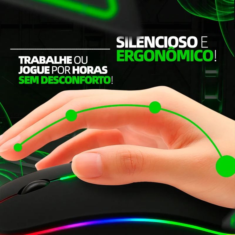 Cansado de ficar preso a fios que limitam seus movimentos? Esse mouse sem fio recarregável foi desenvolvido especialmente para quem busca liberdade total na hora de trabalhar, estudar ou se divertir.A maioria dos mouses convencionais exigem constantes trocas de pilhas, um gasto contínuo e incômodo. Com a bateria recarregável deste produto, você esquece esses problemas. Basta conectar à USB quando a carga acabar e pronto, está pronto para mais horas de uso sem interrupções.O design ergonômico garante que sua mão fique confortável mesmo em longas sessões de trabalho. Nada de dores, cansaço ou desconforto. O produto foi pensado para a sua saúde e bem-estar durante o uso prolongado.A conectividade sem fio de 2.4 GHz oferece alcance de até 10 metros, permitindo que você se mova livremente pela sua mesa, sala ou qualquer ambiente sem perder a conexão. Os cliques silenciosos não perturbam quem está ao seu redor, ideal para quem trabalha em ambientes compartilhados.Se você está cansado de solução improvisadas e quer um mouse moderno, prático e confiável, este é o produto que sua rotina precisa. Invista em qualidade e sinta a diferença no seu dia a dia.