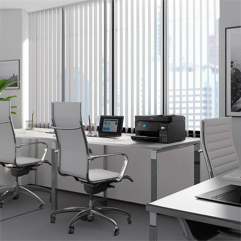 A nova EcoTank L5590 é um equipamento multifuncional poderoso 4 em 1 para pequenos escritórios e profissionais que buscam velocidade de impressão, resolução e confiabilidade de nível empresarial com funções direcionadas para aumentar sua produtividade. A L5590 conta com a tecnologia PrecisionCore Heat-Free que oferece um desempenho de impressão eficiente e otimizado, com velocidades de impressão até 50% mais rápidas que os modelos anteriores, alta qualidade e resolução de impressão. Para tornar o dia a dia ainda mais produtivo, o modelo conta com alimentador automático de papel, que simplifica as cópias e digitalizações frequentes, além de conectividade avançada (Wi-Fi, Wi-Fi Direct e Ethernet) para personalizar o acesso e compartilhar o equipamento em redes. Com o aplicativo Epson Smart Panel, é possível aproveitar toda a produtividade da impressora através de seus dispositivos inteligentes. Para completar, conta com garantia limitada e estendida de até 2 anos², para que seja possível imprimir com baixíssimos custos e sem preocupações.