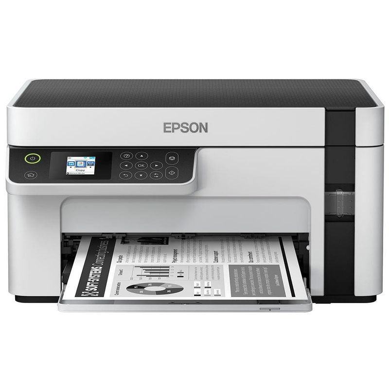 A Epson EcoTank M2120 é uma multifuncional tanque de tinta compacta que proporciona baixo custo de impressão com alto rendimento. Com o único sistema tanque de tinta 100% sem cartuchos, atende adequadamente empresas e grupos de usuários que buscam alta produtividade, performance e conectividade.A EcoTank M2120 oferece economia inigualável com até 90% em comparação com impressoras à laser. Ideal para os negócios, esta impressora multifuncional Epson possui tinta pigmentada que apresenta secagem instantânea, proporcionando uma velocidade de impressão de até 32 páginas por minuto.A Epson M2120 apresenta um design compacto e moderno, com tanque de tinta frontal integrado na multifuncional, facilitando o monitoramento de tinta e com sistema de abastecimento Ecofit, que evita desperdícios e sujeiras. Imprima direto do smartphone, tablet ou notebook com o Wi-Fi Direct, sem a necessidade de roteador ou internet.