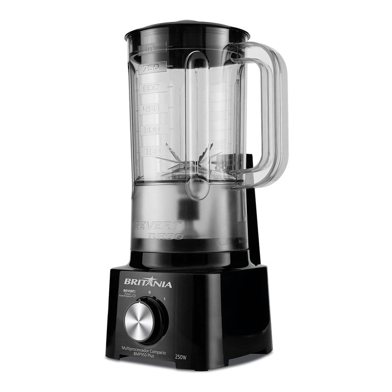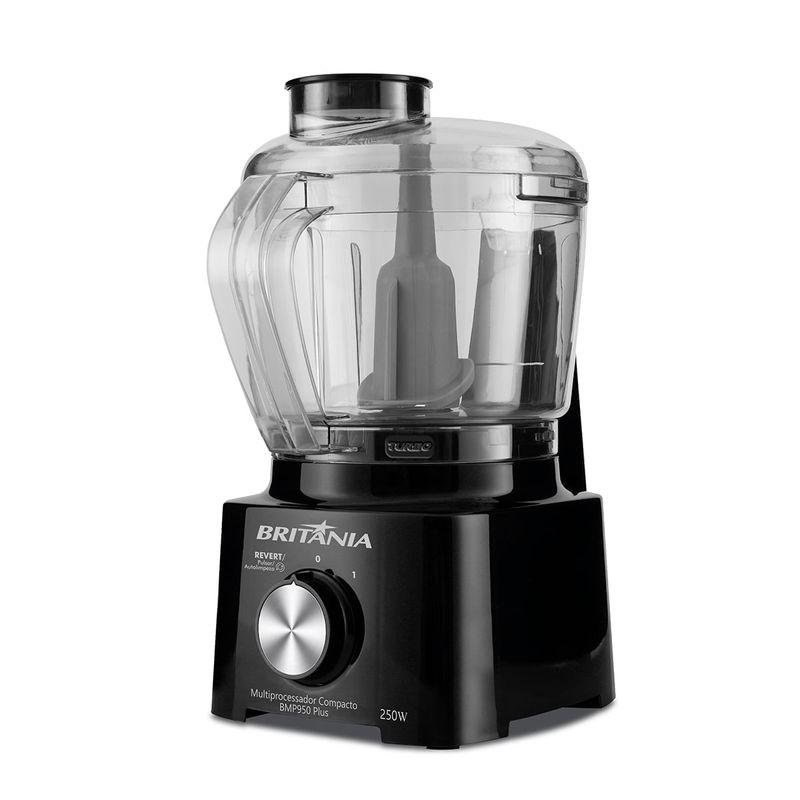 Sua cozinha ainda mais completa com o Multiprocessador Britânia 2 em 1 Compacto BMP950 Plus! 2 em 1, ele garante mais versatilidade, pois pode ser usado como liquidificador e processador. Com jarra do processador de até 500ml, prepare diversos tipos de alimentos. Já o liquidificador, tem capacidade para até 850ml. Além disso, esse Multiprocessador possui tecnologia Pro Maxx 6, com 6 lâminas de altíssimo poder de trituração e 300W de potência. Assim, os alimentos são triturados e liquidificados de forma ainda mais eficiente. E, para sua segurança, o Multiprocessador Britânia BMP950 é equipado com trava de segurança para que o aparelho só funcione se estiver corretamente montado, reduzindo o risco de acidentes. Sua cozinha mais completa com o Multiprocessador Britânia 2 em 1 Compacto BMP950 Plus! • Possui trava de segurança: o aparelho só funciona com a jarra/copo encaixados na posição correta • Potência 300W • 1 velocidade + pulsar + autolimpeza • 2 em 1: Liquidificador e processador • Funções: processar, cortar, misturar, picar, moedor e liquidifica • Design vertical: ocupa menos espaço na cozinha • Todos os acessórios podem ser lavados na lava-louças • Copo para liquidificador com alça lateral • Jarra do Processador com capacidade de 500ml • Copo do liquidificador com capacidade de 850ml • Base antiderrapantes e porta fio • Faca cimitarra ou tipo hélice• 1 Jarra, 1 copo liquidificador, 1 Torre com lâminas em aço inox