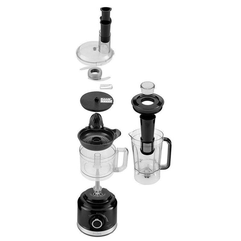 Multiprocessador Philco 5 Em 1 900W 4 Lâminas PMP1500P Turbo 110VSua cozinha mais equipada com apenas um produto: Multiprocessador Philco PMP1500P Turbo 5 em 1 900W! Por ser 5 em 1, ele liquidifica, processa, corta, mistura, fatia, rala, espreme e pica. Possui 4 lâmina em aço inox de maior durabilidade e altíssima capacidade de corte, além do sistema de eixos duplos, que garantem força e velocidade, resultando em mais agilidade e desempenho. Além disso, o Multiprocessador Philco possui 900W de potência para que seus alimentos sejam preparados de modo ainda mais rápido e eficiente. E, para evitar que o produto se movimente na bancada, tem pés antiderrapantes, garantindo maior segurança durante o uso, e trava de segurança em que o aparelho só funciona com a jarra/copo encaixados na posição correta.Afinal, tem facilidades com o Multiprocessador Philco PMP1500P Turbo 5 em 1 1000W, que só a Philco faz para você!- Trava de segurança: o aparelho só funciona com a jarra/copo encaixados na posição correta- 1000W de potência- 2 Velocidades + Pulsar- Possui 4 lâminas- Jarra plástica do processador com capacidade total e útil de 1,5 litros- Pilão duplo- Chapa decorativa frontal em inox- Pés antiderrapantes- 5 em 1 – 01 copo de liquidificador, 01 Jarra do processador, 01 adaptador de lâminas, 01 lâmina de fatiar, 01 lâmina de ralar e 01 lâmina processadora e 01 espremedor de frutas (peneira e cone). Copo plástico do Liquidificador com capacidade total para 2,7 litros e útil de 1,5 litros, com sobre tampa dosadora e filtroEspecificações Técnicas:Marca: PhilcoModelo: PMP1500PCor: PretoEstado: NovoPossui trava de segurança: SimFuncionamento: O aparelho só funciona com a jarra/copo encaixados na posição corretaAltura do produto: 43,9 cmLargura do produto: 26,5 cmComprimento do produto: 23 cmPeso do produto: 2,873 kgAltura com embalagem: 36 cmLargura com embalagem: 45,1 cmComprimento com embalagem: 23,6 cmPeso com embalagem: 3,345 kgGarantia (Dias): 360Observação: Somente faturamos para o nosso consumidor final, ou seja, não faturamos pedidos para CNPJ por este portal de vendas;