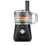 Praticidade e versatilidade na cozinha? O Multiprocessador Philco All In One Citrus 800W é o aliado perfeito para isso! Combinando espremedor de frutas, liquidificador e processador em um único aparelho, é ideal para uma variedade de receitas, pois processa, corta, mistura, fatia, rala, pica e bate com eficiência. Esse Multiprocessador oferece duas velocidades e função pulsar, adaptando-se a todas as suas necessidades na cozinha. O processador possui uma jarra de 1,2 litros e o liquidificador conta com um copo de 2,2 litros, proporcionando espaço suficiente para preparar refeições saborosas sem preocupações. Guardar o aparelho também é simples graças ao sistema microstore, que permite armazenar todos os acessórios dentro da jarra, exceto o espremedor. Além disso, o material é compatível com a máquina de lavar loiça, facilitando a limpeza. Com design vertical, o Multiprocessador Philco ocupa menos espaço na sua cozinha, e para garantir segurança, inclui pés antiderrapantes e uma trava de segurança que impede o funcionamento se não estiver corretamente montado.Trava de segurançaCapacidade da Jarra 1,25LCapacidade total do copo do liquidificador de 2,2L e útil de 1,5L02 velocidades + pulsarMicrostore: todos os acessórios podem ser guardados dentro da jarra-menos o espremedor Possui acessórios que executam múltiplas funções: 01 copo de liquidificador, 01 lamina de ralar, 01 lamina de fatiar, 01 espremedor, 01 lamina de processar.Design vertical: ocupa menos espaço na cozinhaTodos os acessórios podem ser levados a lava-louçasPés antiderrapantesFunções: processar, cortar, misturar, fatiar, ralar, espremer, picar, liquidificar.
