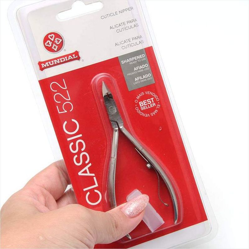 Mundial Alicate Cutículas Classic 522 - Corte Preciso e Durabilidade Inigualável Apresentamos o Alicate Mundial Profissional Classic 522, a ferramenta essencial para quem busca um acabamento impecável nas unhas. Com lâminas afiadas e um design ergonômico, este alicate é ideal para a remoção de cutículas, proporcionando um corte preciso e seguro. Fabricado em aço inoxidável de alta qualidade, ele garante durabilidade e resistência, sendo a escolha perfeita para manicures profissionais e uso doméstico. Ingredientes e Composição O Alicate Cutículas Classic 522 é confeccionado em aço carbono niquelado, um material que oferece alta resistência à corrosão e facilidade na esterilização. Seu cabo texturizado proporciona uma pegada firme, evitando deslizamentos durante o uso, o que é fundamental para a segurança e eficácia na hora de cuidar das suas unhas. Modo de Usar Para utilizar o Alicate Mundial Classic 522, siga estas etapas: Certifique-se de que suas cutículas estejam macias, podendo usar um amolecedor de cutículas para facilitar o processo. Segure o alicate pelo cabo texturizado, garantindo uma boa aderência. Com cuidado, pressione as lâminas do alicate sobre a cutícula e faça o corte com movimentos precisos. Após o uso, limpe e esterilize o alicate para manter sua durabilidade e eficácia. Benefícios O Alicate Cutículas Classic 522 oferece uma série de vantagens: Corte preciso: As lâminas afiadas permitem um corte limpo e sem danificar a pele ao redor. Alta durabilidade: Fabricado em aço inoxidável, é resistente e pode ser esterilizado em estufas, garantindo uma longa vida útil. Design ergonômico: O cabo texturizado proporciona conforto e segurança durante o manuseio, ideal para uso prolongado. Indicação O Alicate Cutículas Classic 522 é perfeito para: Manicures profissionais que buscam resultados excepcionais em seus serviços. Podólogos que necessitam de uma ferramenta confiável para cuidados com as unhas e cutículas. Usuários domésticos que desejam manter suas unhas bem cuidadas e livres de cutículas excessivas. Principais Dúvidas Este alicate é autoclavável, o que significa que pode ser esterilizado adequadamente após cada uso, garantindo a higiene necessária. Sua lâmina possui alta afiação, proporcionando um corte preciso e sem esforço. O alicate é indicado tanto para uso profissional quanto doméstico, e sua manutenção é simples: basta limpar e esterilizar após cada utilização. Sobre Nós Na Negabella, nossa missão é realçar a beleza das mulheres com produtos 100% originais e de alta qualidade. Desde 2018, oferecemos itens com o selo de qualidade da ADIPEC, acreditando que cuidar da autoestima é um investimento. Se sua compra for um presente, informe-nos após a compra e teremos o prazer de enviar o produto em uma embalagem especial. Venha fazer parte do nosso universo de beleza!