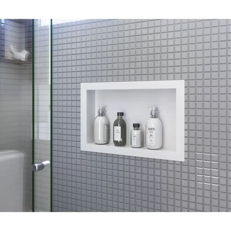 Descubra o nicho decorativo que vai elevar o seu ambiente a um novo patamar de elegância e organização. Nosso nicho é a combinação perfeita de design sofisticado e praticidade, projetado para complementar qualquer estilo de decoração e proporcionar soluções inteligentes de armazenamento. Pronto para montar, proporcionando uma instalação rápida e sem complicações. Elegância e Funcionalidade em Cada Detalhe!Medidas (61x31):Comprimento: 61cmLargura: 31cmProfundidade: 8cmParte Interna:Profundidade: 8cmVista (Borda aparente): 3cmAltura: 8cmComprimento: 53cmLargura: 24cmMaterial: Plástico NICHO DE EMBUTIR