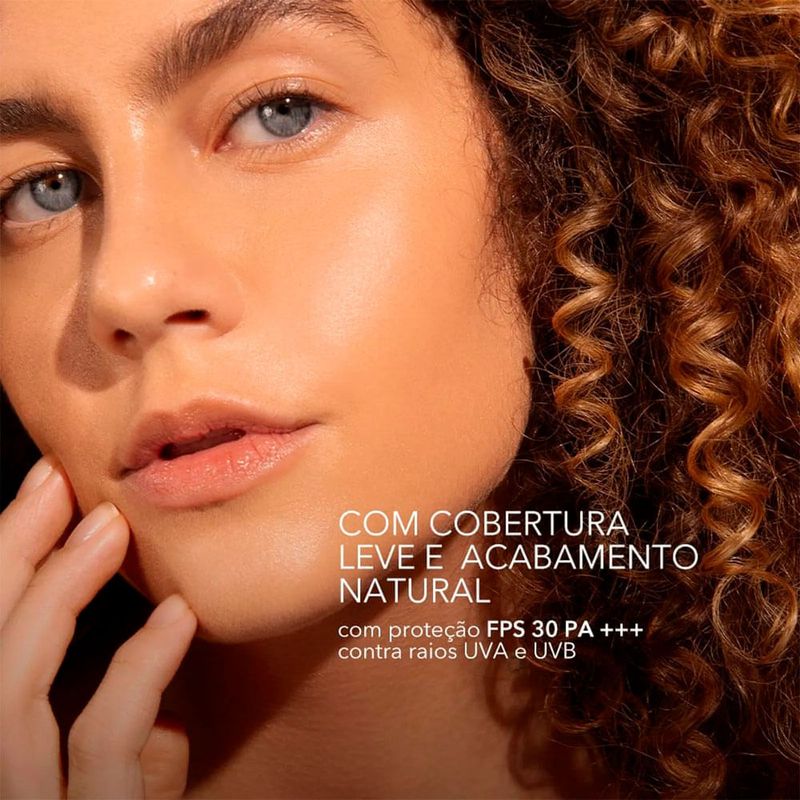 A Océane Edition Skin Tint FPS 30 300M - Base Fluida 30ml é uma base leve e hidratante que combina maquiagem e tratamento em um único produto. Com textura fluida e acabamento natural, uniformiza o tom da pele, hidrata e protege contra os raios solares. Ideal para o dia a dia, proporciona cobertura leve a média com aspecto saudável e luminoso. Características Marca: Océane Linha: Edition Skin Tint Categoria: Base Fluida Versão: 300M Benefícios: Textura fluida: espalha com facilidade e não pesa na pele. Acabamento natural: proporciona efeito glow e aparência uniforme. Proteção solar: FPS 30 que ajuda a proteger a pele dos danos do sol. Hidratação prolongada: mantém a pele macia e confortável ao longo do dia. Fórmula vegana: livre de ingredientes de origem animal e não testada em animais. Ingredientes Principais: Ácido hialurônico, niacinamida e esqualano vegetal. Cor / Acabamento: Tom médio (300M) com subtom neutro e acabamento natural luminoso. Modo de Aplicação Agite bem antes de usar. Aplique pequenas quantidades no rosto e espalhe com os dedos, pincel ou esponja. Para uma cobertura mais intensa, adicione uma segunda camada nas áreas desejadas. Finalize com pó translúcido para um efeito mais matte, se preferir. Benefícios do Produto Eficácia: Hidrata, uniformiza e protege a pele, mantendo o aspecto natural e leve. Durabilidade: Mantém o acabamento fresco e uniforme por horas. Versatilidade: Ideal para o uso diário, podendo ser usada sozinha ou combinada com outros produtos. Design ou Praticidade: Embalagem moderna com bico dosador que facilita a aplicação e evita desperdício. A Océane Edition Skin Tint FPS 30 300M - Base Fluida 30ml é perfeita para quem busca uma maquiagem leve, natural e com benefícios de skincare. Sua fórmula com ácido hialurônico e niacinamida garante hidratação e proteção, enquanto o acabamento luminoso realça a beleza natural da pele.