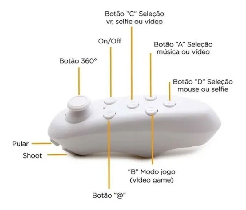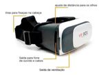 ÓCULOS DE REALIDADE VIRTUAL ABS PARA CELULAR COM CONTROLE ATENCÃO: COMPATÍVEL COM CELULARES DE ATE 6 POLEGADAS Já pensou em viver a tecnologia virtual, ter a sensação de realmente fazer parte dela? Se você ama a tecnologia VR 3D você precisa ter um Óculos de Realidade Virtual. O óculos de realidade virtual VR Box, é um produto leve, confeccionado em ABS de alta durabilidade. É fácil de manusear, nas laterais possuem botões de ajuste de foco e na parte superior ajuste de enquadramento. É muito confortável. O Óculos projeta imagens em frente aos olhos do usuário e acompanha os movimentos da cabeça para movimentar a cena. É uma imersão em 360 graus. O Óculos não funciona só com jogos, mas também com conteúdo interativos, de diversos tipos, como simulações de diversas situações, por exemplo. Será possível, da sua casa, visitar diversos locais do mundo que tenham conteúdos preparados para realidade virtual. Ele te coloca na cena sem te tirar do lugar, não é incrível? Acompanha controle remoto bluetooth deixando seu jogo muito mais interessante. Permita-se a experiência de imersão no mundo virtual. Controle remoto bluetooth não é compatível com todos os jogos de realidade virtual. Utilizá-lo não tem segredos, basta baixar um aplicativo compatível e aproveitar todas as opções disponíveis nele: filmes, jogos, passeios, etc. Há uma espécie de gaveta onde o smartphone deve ser acoplado diante dos seus olhos, uma vez ali, é só fechar escolher a opção e dar início a uma aventura diferente, divertida e cheia de tecnologia. *Como usar o controle remoto? @ + A Modo de música. @ + B Modo paisagem @ + C Modo VR. @ + C Modo temporizador. @ + C Modo Víde @ + D Modo Volume (C/D volume e A/b para confirmar e sair