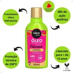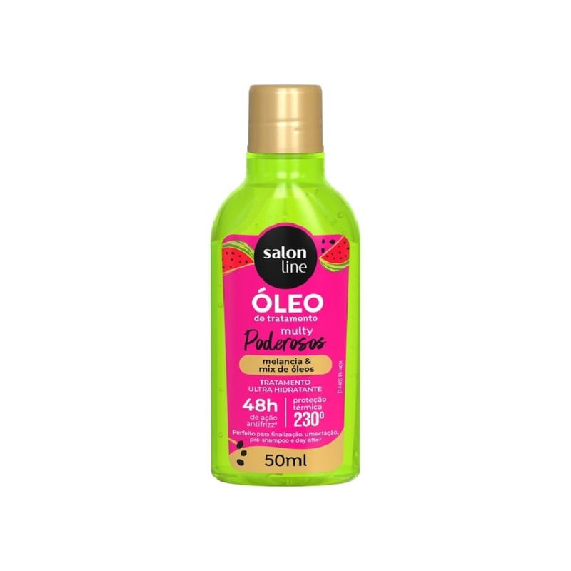 Óleo de Tratamento Salon Line Multy Poderosos Melancia 50ml O que é o Óleo de Tratamento Salon Line Multy Poderosos Melancia? O Óleo de Tratamento Multy Poderosos Melancia e Mix de Óleos 50ml da Salon Line é um finalizador multifuncional desenvolvido para cabelos cacheados, crespos e ondulados que precisam de hidratação profunda, controle de frizz e brilho intenso. Com fórmula leve e potente, oferece ação antifrizz por até 48 horas e proteção térmica até 230°C. Para que serve? Perfeito para finalização, umectação, pré-shampoo e day after, este óleo atua como um tratamento completo que combate o ressecamento, melhora a maleabilidade dos fios e protege contra danos térmicos e externos. Como funciona? Sua fórmula rica em óleos vegetais, D-pantenol e aminoácidos restaura a saúde da fibra capilar, promovendo nutrição e selagem das pontas. O resultado são cabelos mais definidos, macios, com brilho natural e sem frizz por muito mais tempo. Como usar? Aplique algumas gotas nas mãos com o cabelo seco ou úmido. Espalhe do comprimento às pontas. Pode ser usado como pré-shampoo, óleo de umectação ou finalizador. Não enxágue. Composição Óleo de Melancia Óleo de Argan D-Pantenol Mix de Aminoácidos Fórmula vegana, sem parabenos e dermatologicamente testada. Precauções Uso externo. Evite contato com os olhos. Em caso de irritação, suspenda o uso. Mantenha fora do alcance de crianças. Principais Benefícios Hidratação profunda e ação antifrizz por 48h Nutrição leve sem pesar os fios Proteção térmica até 230°C Versatilidade de uso: finalização, day after e umectação Brilho e maciez instantâneos