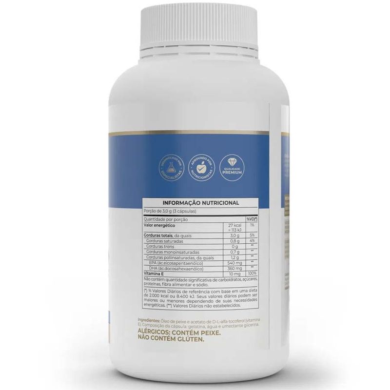 Ômega 3 – epa dha é um suplemento alimentar à base de óleo de peixe (fonte de Ômega 3) e vitamina e. Benefícios O óleo de peixe (fonte de ômega 3) e vitamina e; A vitamina E é um antioxidante que auxilia na proteção dos danos causados pelos radicais livres. Ingredientes Óleo de peixe e acetato de DL-alfa-tocoferol (vitamina e). Composição da cápsula: gelatina, água e umectante glicerina. não contém glúten. alérgicos: contém peixe. Recomendações de uso Suplemento alimentar de uso adulto (a partir de 19 anos de idade): ingerir 3,0g (3 cápsulas) ao dia ou seguir a recomendação de um profissional da saúde. Diferenciais Extraído de águas frias e profundas de regiões polares; Com certificação do Programa Internacional de Padrões de Óleo de Peixe (ifos ). Único programa de testes e certificação de terceiros para óleos de peixe. Definindo os padrões mais altos do mundo em pureza, potência e frescor; Contém Vitamina e, um antioxidante que auxilia na proteção dos danos causados pelos radicais livres; Fonte de Ômega 3 (tg); Odor Free. Conservação Manter o produto bem fechado e conservar ao abrigo de luz, calor, odor e umidade. Não utilize o produto caso a embalagem esteja violada. Após aberto, consumir preferencialmente em até 60 dias. Informações adicionais não exceder A recomendação diária de consumo indicada na embalagem. este produto não é um medicamento. mantenha fora do alcance de crianças.