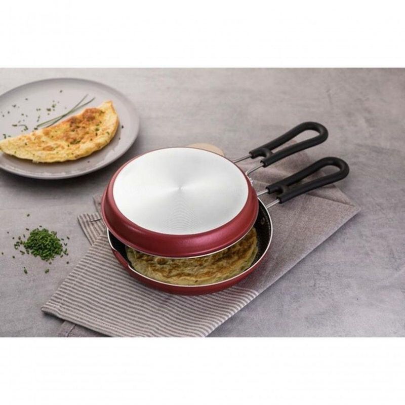 Omeleteira Tramontina Loreto Em Alumínio 24cm AntiaderenteA omeleteira Tramontina Loreto em alumínio com revestimento interno e externo em antiaderente Starflon Max vermelho 24 centímetros de diâmetro é um utensílio indispensável para quem adora saborear aquele omelete de queijo e legumes. Produzida em alumínio com espessura especial e revestimento em antiaderente Starflon Max, ela proporciona o cozimento dos alimentos de maneira uniforme e evita que eles grudem em sua superfície, além de ser durável, fácil de limpar e não prejudicial à saúde. Os cabos são em baquelite, material antitérmico que não aquece e garante um manuseio muito mais confortável e . Além de todas essas características, ela pode ir à máquina de lavar louças, otimizando suas tarefas na cozinha!Recomendações de Uso:Antes do Uso: Lave com esponja macia, sabão neutro ou detergente líquido. Depois de secar, unte a área interna com óleo ou gordura e leve ao fogo por um ou dois minutos. Deixe esfriar e lave novamente. Seu utensílio Starflon está pronto para uso, sempre em fogo baixo ou médio (nunca superior a 260 °C).Modo de Uso: ;Para mexer os alimentos use somente utensílios de silicone, nylon ou madeira. Este produto não necessita de manutenção, apenas limpeza. ;Evite a imersão do utensílio quente em água fria. Nunca utilize produtos abrasivos na lavagem. Se deixar queimar alimentos, umedeça a área e reserve até que possa remover os resíduos grudados com esponja e sabão. ;Informações Adicionais:- Podem ir à máquina de lavar louças facilitando seu dia a dia;- Cabos de baquelite antitérmico que oferecem durante o manuseio;- A capacidade volumétrica máxima para cozimento é de 3/4 da capacidade total da peça;- Corpo de alumínio com espessura de 1,6 mm que proporciona cozimento rápido e uniforme;- Revestimento interno e externo de antiaderente Starflon Max que não gruda, é fácil de limpar, mais durável e não é prejudicial à saúde, pois é livre de PFOA.- Foto meramente ilustrativa.