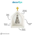 Oratório Iluminado Pray For UsO Oratório Iluminado Pray for Us é um presente especial, sem limitação de gênero ou idade.Bastante utilizados na decoração de ambientes, comportam estátuas preferidas de devoção. Por ser iluminado, cria um clima especial, aconchegante que remete à proteção espiritual do lar. Pode ser usado na parede ou sobre bancada.Especificações do produto:Material: PolietilenoDimensões Externas: 33x 25x 21,5cm + 5cm cruzDimensões Internas: 27x20x13cmTensão: 110V/220VAlimentação: Cabo de força com interruptor medindo 1,8m de comprimentoCuidados: Limpar com pano úmido e macio. Teme químicos e abrasivos. Não utilizar lâmpadas incandescentes de qualquer tipo.O Oratório Iluminado Pray for Us é um presente especial, sem limitação de gênero ou idade.Bastante utilizados na decoração de ambientes, comportam estátuas preferidas de devoção. Por ser iluminado, cria um clima especial, aconchegante que remete à proteção espiritual do lar. Pode ser usado na parede ou sobre bancada.Especificações do produto:Material: PolietilenoDimensões Externas: 33x 25x 21,5cm + 5cm cruzDimensões Internas: 27x20x13cmTensão: 110V/220VAlimentação: Cabo de força com interruptor medindo 1,8m de comprimentoCuidados: Limpar com pano úmido e macio. Teme químicos e abrasivos. Não utilizar lâmpadas incandescentes de qualquer tipo.