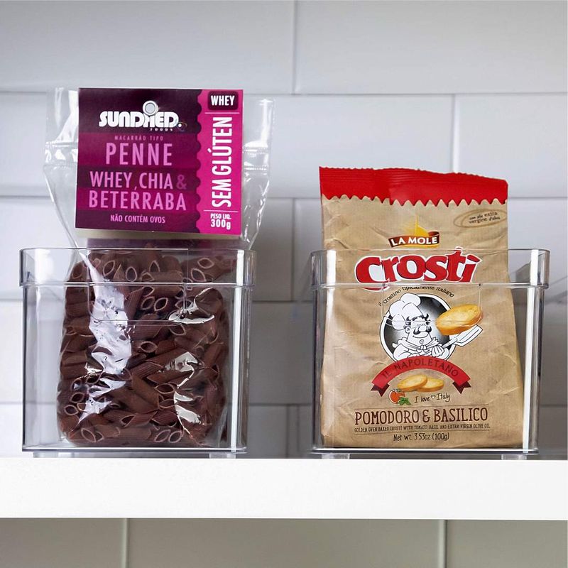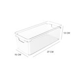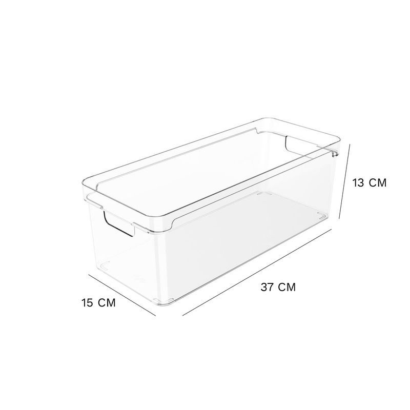 Organizador de Armários Clear Ou 37 x 15 x 13 cm Detalhes do Produto: O Organizador de Armários Clear é o novo padrão de transparência na organização. Seu design foi pensado para permitir diversas composições em diferentes tipos de armários ou gavetões e proporcionar máximo aproveitamento de espaço nos ambientes. Produzido em material resistente, o organizador possui alças confortáveis que facilitam na hora do transporte. Na despensa ou na cozinha, no quarto ou na lavanderia, a Linha Clear é indispensável para auxiliar você na organização da sua casa. Cuidados: Este produto é BPA Free. Não deve ser levado ao freezer, lava-louças e micro-ondas. Sugere-se higienizar o mesmo com sabão neutro e esponja macia, evitando produtos abrasivos no processo de limpeza. Material: Poliestireno (PS) Medidas: 37 cm comprimento x 15 cm largura x 13 cm altura Itens inclusos: 1 unidade do Organizador de Armários Clear 37 x 15 x 13 cm Garantia do fornecedor: 3 meses