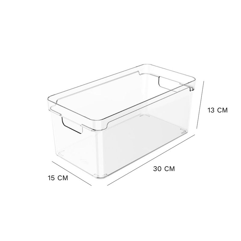 Organizador de Armários Clear Ou 5 Litros 30 x 15 x 13 cm Detalhes do Produto: Os Organizadores de Armários Clear permitem diversas composições em diferentes tipos de armários ou gavetões e proporcionam máximo aproveitamento de espaço nos ambientes. Com alças confortáveis que facilitam na hora do transporte, são empilháveis e de fácil higienização. Alta transparência para armazenar e enxergar facilmente o conteúdo, mantendo tudo em ordem. Na despensa, na cozinha, no quarto ou no banheiro, os Cestos Clear são indispensáveis para auxiliar na organização da sua casa. Cuidados: Este produto é BPA Free. Não deve ser levado ao freezer, lava-louças e micro-ondas. Sugere-se higienizar o mesmo com sabão neutro e esponja macia, evitando produtos abrasivos no processo de limpeza. Material: Poliestireno (PS) Medidas: 30 cm comprimento x 15 cm largura x 13 cm altura Itens inclusos: 1 unidade do Organizador de Armários Clear 5 Litros 30 x 15 x 13 cm Garantia do fornecedor: 3 meses