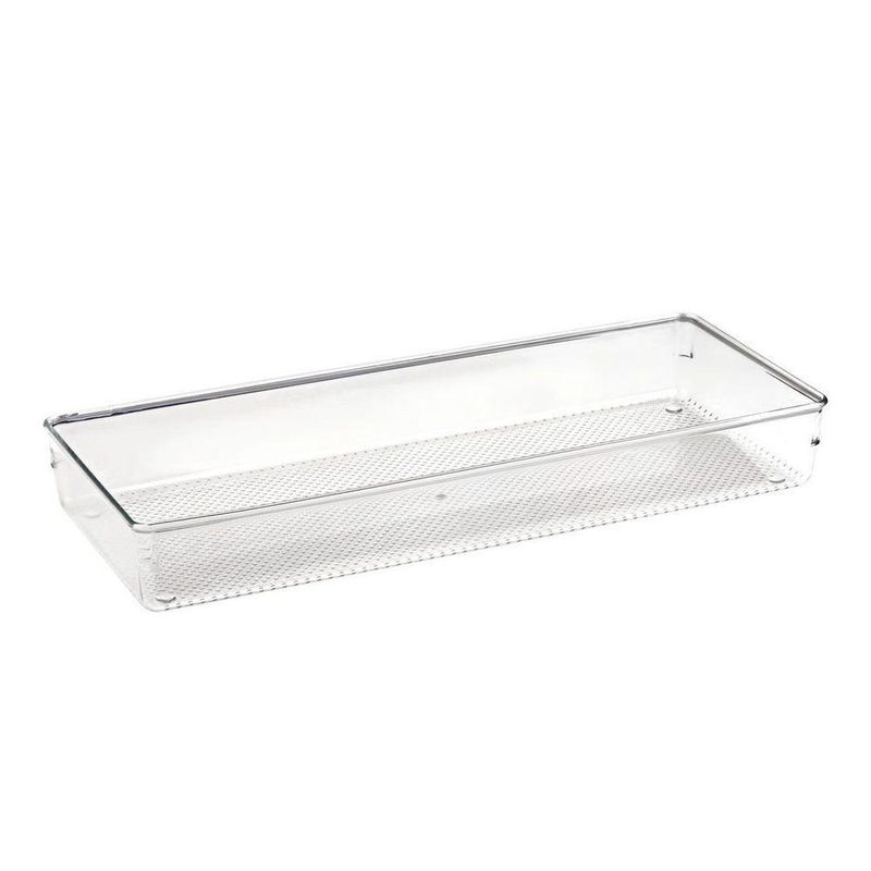 Organizador De Gavetas Modular Multiúso Em Plástico Transparente 38x15cm TransparenteA Cesta Organizadora 2,5L Plasvale é produzida em material atóxico, resistente e de alta durabilidade. Com ela você pode organizar melhor seus armários e gavetas. Por ser transparente você consegue visualizar o conteúdo interno por todos os lados. Com mais facilidade na organização, você pode armazenar alimentos, medicamentos, itens de escritório, uma infinidade de opções. Leve funcionalidade e otimize os espaços de maneira elegante e prática.Dimensões: 38,3x15,4x5,6cm (Comprimento x Largura x Altura)Peso: 0,306 KgMaterial: Plástico Pet.A Plasvale é uma empresa de utilidade doméstica que trabalha com amor na criação, qualidade, sustentabilidade e tecnologia de seus produtos. Nosso objetivo é estar presente nos lares e tornar a vida de nossos clientes mais fácil, prática e feliz.Características Gerais do Produto:- Material: Plástico PET- Dimensões: 38,30 cm (C) x 15,40 cm (L) x 5,60 cm (A)- Características Adicionais: EmpilhávelGarantia:- 90 dias após o recebimento do produto