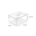 Organizador de Geladeira com Tampa Clear Fresh Ou 2,2 Litros Detalhes do Produto: O Organizador de Geladeira Clear Fresh é o novo padrão de transparência na organização da sua geladeira. Empilhe, encaixe e enxergue facilmente os alimentos armazenados na geladeira, mantendo tudo em ordem. Seu design foi pensado para promover frescor prolongado para alimentos como: frutas, saladas, verduras e legumes mantendo uma rotina sem desperdícios. A tampa com ventilação ajustável mantém o nível de umidade ideal para cada tipo de alimento e a bandeja de drenagem evita que os alimentos fiquem molhados após a lavagem, ajudando a prevenir a deterioração precoce. Empilhável, permite diversas composições para proporcionar o máximo aproveitamento de espaço na geladeira. Super transparência, beleza e cuidado com o alimento são características da linha Clear Fresh, perfeitas para auxiliar na organização da sua geladeira e facilitar o seu dia a dia. Cuidados: Este produto é BPA Free. Não deve ser levado ao freezer, lava-louças e micro-ondas. Sugere-se higienizar o mesmo com sabão neutro e esponja macia, evitando produtos abrasivos no processo de limpeza. Material: Polipropileno (PP) e Poliestireno (PS) Medidas: 20 cm comprimento x 15 cm largura x 9,5 cm altura Itens inclusos: 1 unidade do Organizador de Geladeira com Tampa Clear Fresh 2,2 Litros Garantia do fornecedor: 3 meses