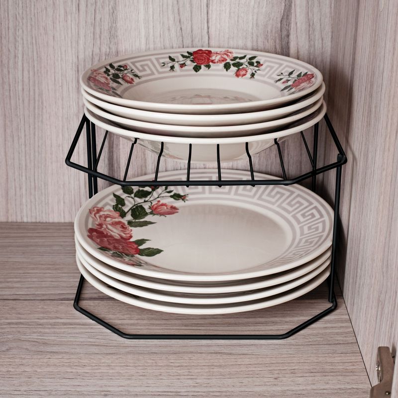 O Suporte Duplo para Pratos Preto da Utimil é perfeito para quem deseja otimizar espaço e manter a cozinha organizada com elegância. Com dois andares, ele permite acomodar pratos grandes, médios e pequenos de forma prática e funcional. Produzido em arame de aço com pintura epóxi preto brilhante, o suporte oferece resistência e durabilidade para uso diário. Seu design moderno valoriza qualquer ambiente, garantindo organização e estilo nos armários ou bancadas. Com dimensões de 15x25x25 cm e peso de 0,297 kg, é compacto e fácil de usar. Adquira já o Suporte Duplo para Pratos Utimil e transforme sua cozinha com praticidade! Que tal aproveitar e conhecer novas toalhas de mesa, para deixar seus momentos ainda mais inesquecíveis? Aproveite!