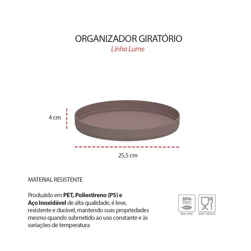 O conjunto com organizador giratorio e saleiro com tampa é pratico, moderno e ideal para manter a cozinha sempre organizada e funcional. O organizador giratorio é perfeito para armazenar temperos, condimentos, molhos ou utensilios, facilitando o acesso e otimizando o espaço. Produzido em PET, PS e aço inoxidavel, é resistente, duravel e facil de limpar. O saleiro com tampa combina bambu e polipropileno, protegendo o sal da umidade e garantindo praticidade no dia a dia. Um conjunto versatil que une elegancia, organizaçao e eficiencia para sua cozinha. Contem:1 Organizador Giratorio Medidas: 25,5 x 25,5 x 4 cmMaterial: PET, Poliestireno (PS) e Aço Inoxidavel 1 Saleiro com Tampa Capacidade: 600 mlMedidas: 11 x 10 x 11 cmMaterial: Polipropileno e Bambu