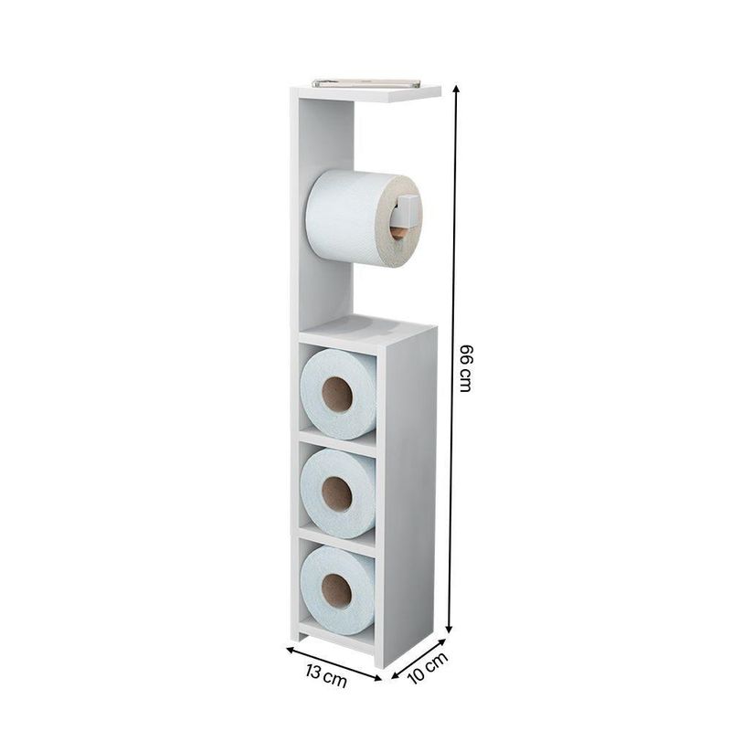 Organizador Papel Higiênico Vertical Decorativo Autria BrancoO Organizador Decorativo Áustria foi desenvolvido para trazer praticidade e charme ao seu banheiro. Seu design vertical otimiza o espaço e garante que você tenha sempre rolos de papel higiênico à disposição. Além do suporte para o rolo em uso, o organizador conta com compartimentos inferiores que permitem armazenar até três unidades adicionais, é a solução ideal para banheiros compactos e lavabos, unindo funcionalidade e um visual moderno.Características do Produto:Tipo: Organizador DecorativoModelo: ÁustriaCor: BrancoDesign vertical compacto e funcionalSuporte superior para o rolo em usoEspaço para até 3 rolos extrasEstrutura que economiza espaço sem perder praticidadeDimensões do Produto:Altura: 66 cmLargura: 13 cmProfundidade: 10 cmAvisos!Verifique as medidas do produto antes da compra para garantir a adequação ao seu ambiente.Itens de decoração presentes na imagem não acompanham o produto.ATENÇÃOAS IMAGENS SÃO MERAMENTE ILUSTRATIVAS E PODEM SOFRER VARIAÇÕES DE COR E PEQUENOS DETALHES DE ACORDO COM O SEU MONITOR, ILUMINAÇÃO DO AMBIENTE E ATÉ MESMO A SUA PERCEPÇÃO VISUAL.Organizador Papel Higiênico Vertical Decorativo Autria Branco