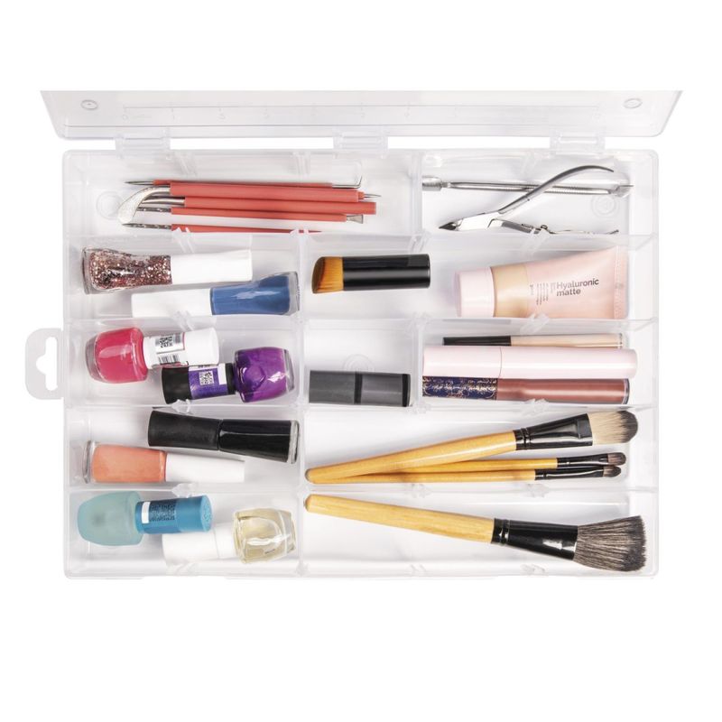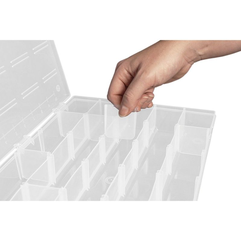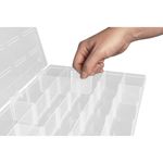 Organizador Plástico Transparente com 25 Compartimentos Tramontina Caixa Divisórias Tramontina - Organizador Plástico Transparente com 25 Compartimentos Tramontina Caixa Divisórias O Organizador Plástico Transparente com 25 Compartimentos RemovÃveis Tramontina oferece praticidade e segurança para organizar seus itens. Fabricado em plástico resistente, possui compartimentos de 6,3 x 4,5 cm, sendo 20 removÃveis para flexibilidade no uso. Ideal para armazenar peças pequenas, ferramentas e acessórios, é perfeito para oficinas, escritórios e artesanatos. Os ressaltos garantem empilhamento modular, e a trava reforçada assegura fechamento seguro. Versátil e eficiente, é a solução para otimizar o espaço e manter tudo organizado. Corpo injetado em plástico de alta resistência. Organizador transparente para visualização do conteúdo interno. Organizador com ressaltos na tampa e no corpo para empilhamento fácil e encaixe modular. Trava reforçada para fechamento seguro. Régua graduada em centÃmetros e polegadas injetada na tampa. Contém 25 compartimentos internos de 6,3 x 4,5 cm, sendo 20 compartimentos removÃveis. Cuidados com o produto Não sobrecarregar as caixas de ferramentas com peso excessivo. Sempre manter as caixas trancadas durante sua movimentação ou transporte. Não apoiar peças sobre as caixas para realizar qualquer trabalho. As caixas são submetidas a testes de aplicação prática para garantir sua resistência durante o uso. Garantia Garantia total contra vÃcios ou defeitos de fabricação. - - Características Gerais do Produto: Garantia: • 3 Meses