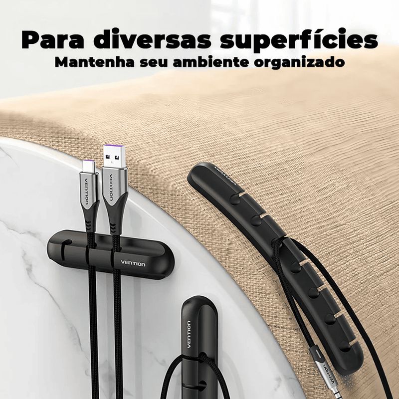 Mantenha sua mesa e superfícies livres da bagunça com o Organizador de Cabos Vention, projetado para acomodar até 7 cabos simultaneamente. Ideal para quem busca praticidade e organização, este acessório transforma qualquer ambiente, evitando emaranhados e facilitando o acesso aos cabos mais usados.Seu design compacto e discreto alia funcionalidade e estilo, fixando-se com segurança em diferentes tipos de superfícies graças à fita adesiva de alta aderência, sem danificar móveis ou paredes. Fabricado com material resistente, garante durabilidade para o uso diário.Principais benefícios:- Organiza até 7 cabos, desde USB-C, Lightning até cabos de alimentação- Fácil instalação em mesas, paredes, bancadas e outras superfícies planas- Evita quedas e emaranhados, aumentando a vida útil dos cabos- Design moderno que combina com qualquer ambiente- Material resistente e de alta qualidade para uso prolongadoTransforme seu espaço com mais ordem e praticidade, garantindo eficiência no seu dia a dia.