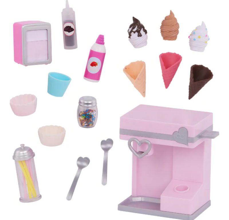 Sirva diversão com o conjunto Our Generation Sundae Fun Day! Esta máquina de sorvete tem tudo o que os amantes de sorvete precisam para criar delícias em miniatura. As crianças podem ativar a alavanca para ouvir sons divertidos enquanto preparam sobremesas imaginárias. Com 3 sorvetes de brinquedo para encher cones e tigelas de waffle, além de acessórios como um pote de canudos e um porta guardanapos. Adicione toques finais com os confeitos, frascos de chantilly e calda de chocolate. Itens inclusos: - 1 máquina de sorvete eletrônica - 2 colheres - 1 garrafa de chantilly - 3 massas de sorvete - 3 tigelas - 3 cones de waffle - 1 pote com canudos - 1 garrafa de calda de chocolate - 1 porta confeitos - 1 porta guardanapo.