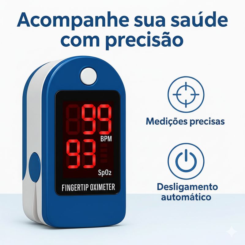 O Oxímetro Digital foi desenvolvido para proporcionar uma leitura prática e confiável dos níveis de oxigênio no sangue (SpO₂) e da frequência cardíaca (BPM). Ideal para uso doméstico, esportivo ou profissional, ele é compacto, leve e muito fácil de usar. Características do Produto: Medição precisa: fornece dados rápidos e confiáveis de oxigênio no sangue e batimentos cardíacos. Tela LED de fácil leitura: exibe claramente os resultados, mesmo em ambientes com pouca luz. Tecnologia de alta precisão: sensores avançados garantem medições consistentes em poucos segundos. Desligamento automático: economiza bateria ao desligar sozinho após o uso. Design compacto e portátil: ideal para carregar em bolsas, mochilas ou kits de primeiros socorros. Funcionamento simples: basta encaixar o dedo e aguardar a leitura. Indicado para todas as idades: adultos, idosos e praticantes de atividades físicas. Benefícios: Acompanha a oxigenação e frequência cardíaca de forma prática. Ajuda no monitoramento de condições respiratórias e cardiovasculares. Ideal para uso pessoal, doméstico, esportivo ou clínico. Portátil e leve, pode ser usado em qualquer lugar. Operação simples e intuitiva, sem necessidade de conhecimento técnico. Conteúdo da Embalagem: 1 Oxímetro digital de dedo 1 Manual de instruções